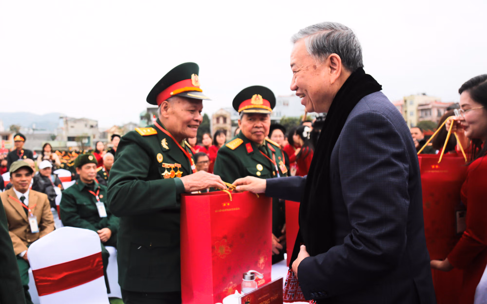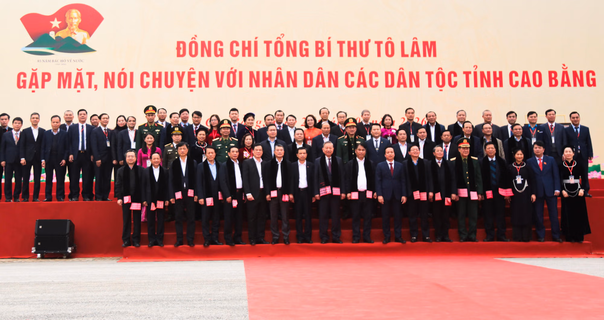Tổng Bí thư Tô Lâm thăm, nói chuyện với nhân dân các dân tộc tỉnh Cao Bằng Thứ Tư 28/01/2026 17:07 (GMT+7) Chiều 28/1, tại Sân vận động tỉnh Cao Bằng, Tổng Bí thư Tô Lâm đến thăm, nói chuyện với đồng bào các dân tộc tỉnh Cao Bằng nhân sự kiện kỷ niệm 85 năm Ngày Bác Hồ về nước. Chương trình gặp mặt, nói chuyện với đồng bào các dân tộc tỉnh Cao Bằng diễn ra lúc 13h30p nhưng từ trước đó, đông đảo người dân đã có mặt chờ đón Tổng Bí thư Tô Lâm và Đoàn đại biểu Trung ương. Ảnh: Hân Nguyễn.Bà con nhân dân chào đón Tổng Bí thư Tô Lâm nồng nhiệt. Ảnh: Hân Nguyễn.Tổng Bí thư Tô Lâm cùng các đồng chí lãnh đạo tỉnh Cao Bằng. Ảnh: Hân Nguyễn.Tổng Bí thư Tô Lâm gửi lời hỏi thăm ân cần đến các Mẹ Việt Nam anh hùng. Ảnh: Hân Nguyễn.Các cháu thiếu nhi tặng Tổng Bí thư Tô Lâm khăn quàng của người Dao đỏ. Ảnh: Hân Nguyễn.Sau khi có bài phát biểu, trò chuyện với nhân dân các dân tộc tỉnh Cao Bằng, Tổng Bí thư Tô Lâm tặng quà Tết cho các Mẹ Việt Nam anh hùng, Cựu chiến binh. Ảnh: Hân Nguyễn.Tổng Bí thư Tô Lâm hỏi thăm, tặng quà Tết cho một số đại biểu tiêu biểu. Ảnh: Hân Nguyễn.Tổng Bí thư Tô Lâm chụp ảnh lưu niệm cùng cán bộ, lãnh đạo Tỉnh ủy, HĐND, UBND, Ủy ban MTTQ Việt Nam tỉnh Cao Bằng. Ảnh: Hân Nguyễn.Tổng Bí thư Tô Lâm cùng các đồng chí lãnh đạo Trung ương trồng cây trong khuôn viên sân vận động. Ảnh: Hân Nguyễn. Hân Nguyễn