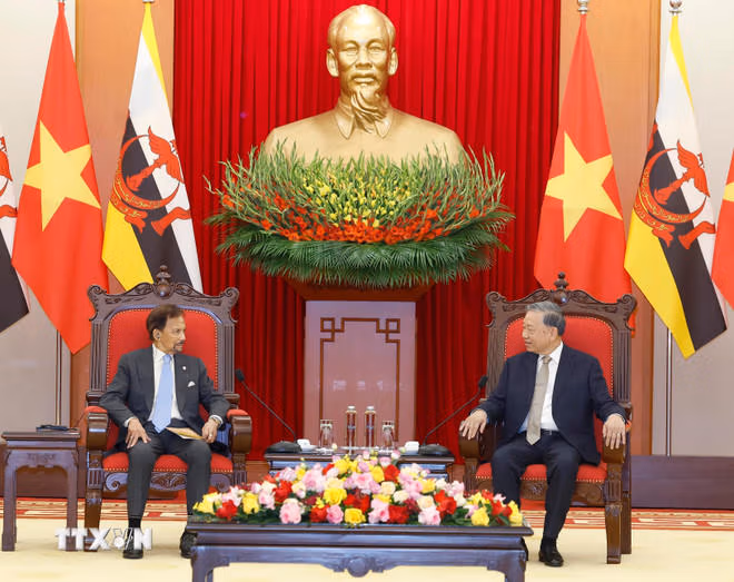 Tổng Bí thư Tô Lâm tiếp Quốc vương Brunei Haji Hassanal Bolkiah Chủ Nhật 30/11/2025 18:40 (GMT+7) Chiều 30/11/2025, tại Trụ sở Trung ương Đảng, Tổng Bí thư Tô Lâm tiếp Quốc vương Brunei Haji Hassanal Bolkiah đang có chuyến thăm cấp nhà nước tới Việt Nam. Tổng Bí thư Tô Lâm tiếp Quốc vương Brunei Haji Hassanal Bolkiah. (Ảnh: Thống Nhất/TTXVN).Tổng Bí thư Tô Lâm tiếp Quốc vương Brunei Haji Hassanal Bolkiah. (Ảnh: Thống Nhất/TTXVN).Tổng Bí thư Tô Lâm tiếp Quốc vương Brunei Haji Hassanal Bolkiah. (Ảnh: Thống Nhất/TTXVN). TheoVietnam+