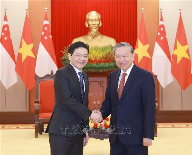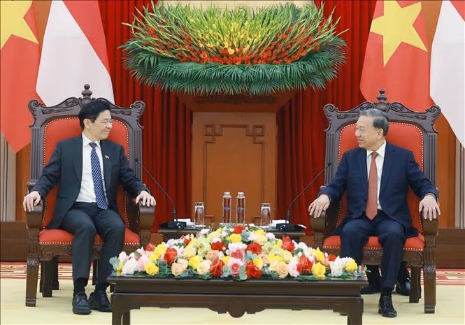 Tổng Bí thư Tô Lâm hoan nghênh và bày tỏ vui mừng gặp lại Thủ tướng Lawrence Wong ngay sau khi hai nước nâng cấp quan hệ lên Đối tác Chiến lược toàn diện; nhấn mạnh ý nghĩa quan trọng của chuyến thăm lần này, thể hiện tinh thần tích cực triển khai, cụ thể hóa nội hàm, định hướng quan hệ song phương thời gian tới, mở đầu chương trình hợp tác mới giữa hai nước, đồng thời thể hiện mối quan hệ ngày càng gắn bó, tin cậy hiệu quả và sinh động giữa hai nước.