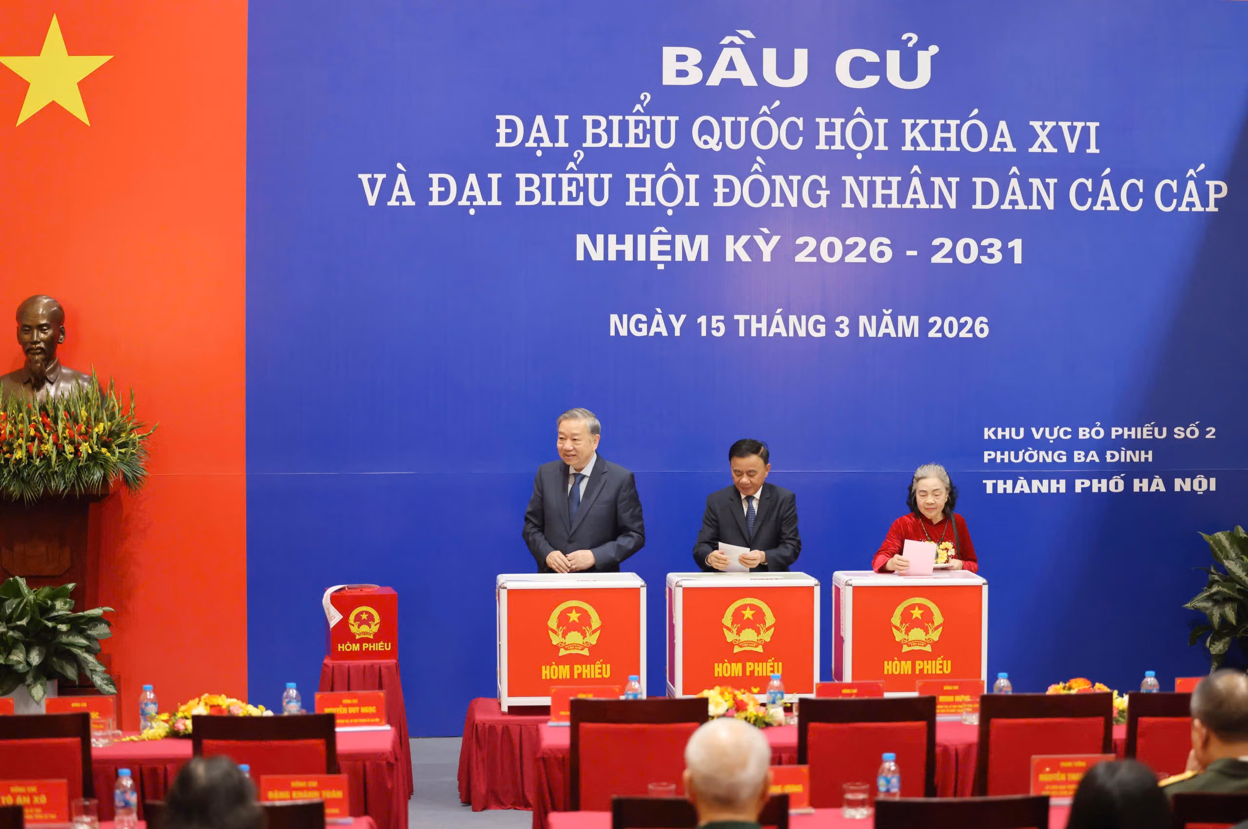 Sau khi hoàn thành nghĩa vụ cử tri thông qua việc bỏ phiếu bầu đại biểu Quốc hội khóa XVI và đại biểu HĐND các cấp nhiệm kỳ 2026-2031, Tổng Bí thư Tô Lâm đã có chia sẻ ngắn với báo chí về ý nghĩa của "ngày hội non sông".