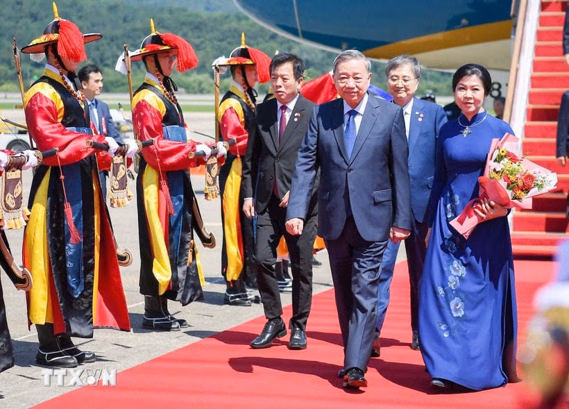 Theo đặc phái viên TTXVN, vào lúc 14 giờ (giờ địa phương) ngày 10/8, chuyên cơ chở Tổng Bí thư Tô Lâm và Phu nhân Ngô Phương Ly, cùng Đoàn đại biểu cấp cao Việt Nam đã tới sân bay quân sự Seongnam ở thủ đô Seoul, bắt đầu chuyến thăm cấp Nhà nước Đại Hàn Dân Quốc từ ngày 10-13/8, theo lời mời của Tổng thống Đại Hàn Dân Quốc Lee Jae Myung và Phu nhân.