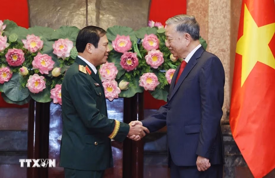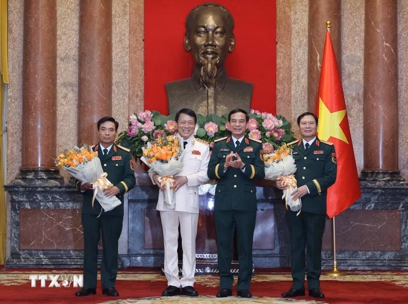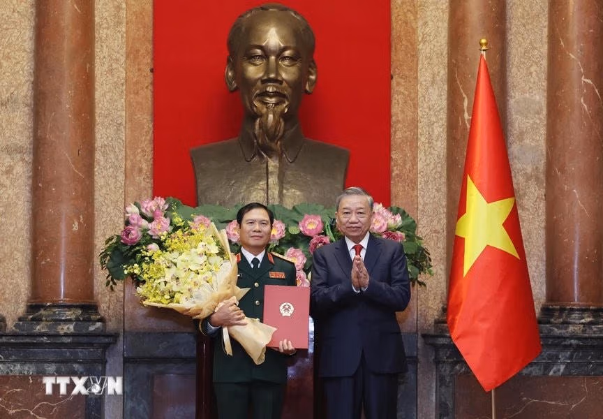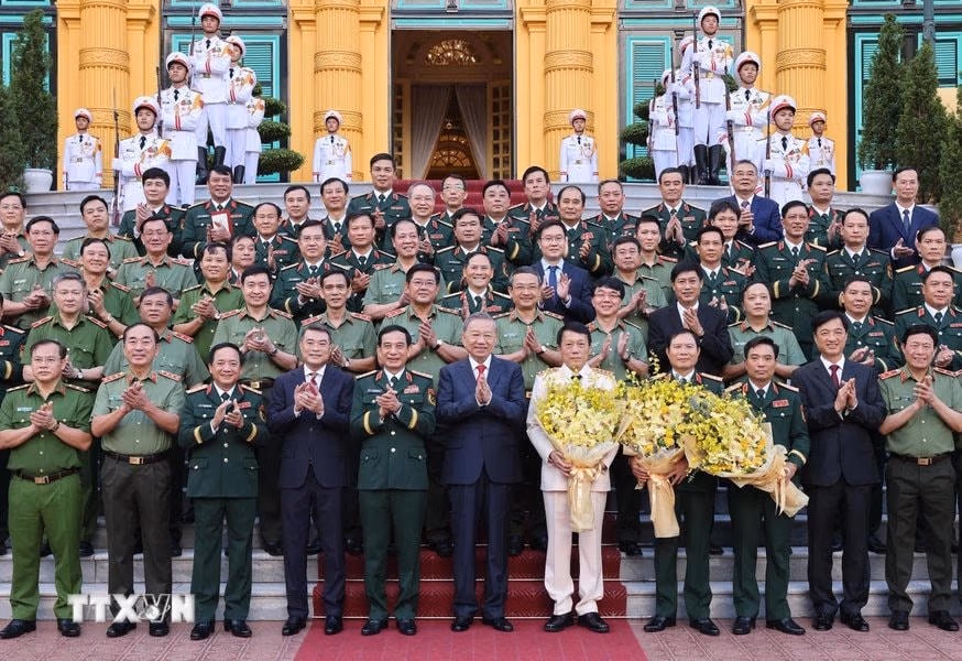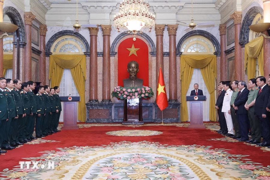 Chiều 20/10, tại Phủ Chủ tịch, Tổng Bí thư, Chủ tịch nước Tô Lâm trao Quyết định thăng cấp bậc hàm Đại tướng với Bộ trưởng Bộ Công an Lương Tam Quang và Tổng tham mưu trưởng QĐND Nguyễn Tân Cương.