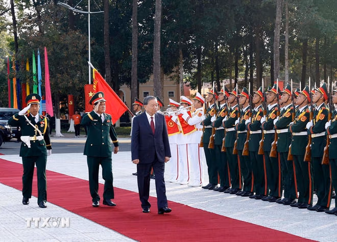 Nhân dịp kỷ niệm 80 năm Ngày truyền thống lực lượng vũ trang Quân khu 9 (10/12/1945-10/12/2025) và đón nhận danh hiệu Anh hùng lực lượng vũ trang nhân dân, trước đó, sáng cùng ngày, tại thành phố Cần Thơ, Tổng Bí thư Tô Lâm, Bí thư Quân ủy Trung ương và Đoàn Công tác của Trung ương đã đến dâng hương, dâng hoa tại Tượng đài Chiến thắng, Nhà bia tưởng niệm các Anh hùng liệt sĩ và Nhà tưởng niệm Chủ tịch Hồ Chí Minh.