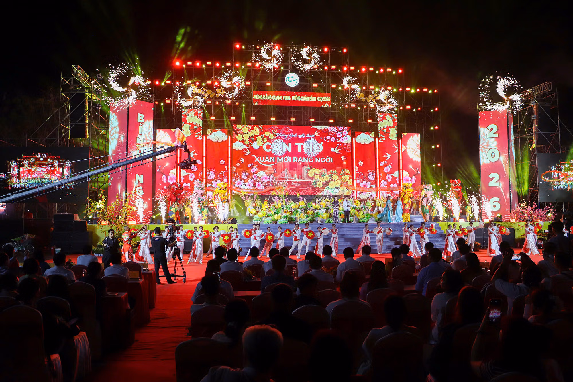TP Cần Thơ nhộn nhịp trong đêm giao thừa Thứ Hai 16/02/2026 22:07 (GMT+7) Tối 16/2, đường phố tại trung tâm TP Cần Thơ đông đúc và nhộn nhịp khi nhiều người dân đổ về đây để du xuân và chờ đón màn pháo hoa đêm giao thừa. Đường phố tại phường Ninh Kiều đông đúc và nhộn nhịp trong đêm giao thừa. (ảnh: C.A)Đường hoa nghệ thuật xuân Bính Ngọ 2026 tại tuyến đường Võ Văn Tần – Nguyễn Thái Học (phường Ninh Kiều) được nhiều người lựa chọn là điểm đến trong đêm giao thừa. (ảnh: C.A)Người dân chụp ảnh, checkin tại đường hoa Cần Thơ. (ảnh: M.T).Bên cạnh đường hoa thì chương trình nghệ thuật đêm giao thừa tại công viên Sông Hậu, phường Cái Khế, TP Cần Thơ cũng thu hút rất đông người dân. (ảnh: C.A)Lãnh đạo TP Cần Thơ dự chương trình nghệ thuật đêm giao thừa tại sông viên Sông Hậu. (ảnh: M.T)Người dân quay lại chương trình hương trình nghệ thuật đêm giao thừa tại sông viên Sông Hậu. (ảnh: C.A)