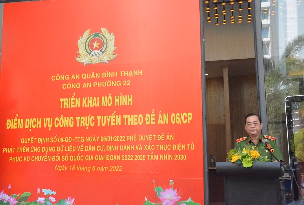 Ngày 18/8, Cục Cảnh sát Quản lý hành chính (QLHC) về trật tự xã hội (TTXH) thuộc Bộ Công an phối hợp với Công an TP HCM tổ chức khai trương mô hình điểm dịch vụ công trực tuyến (DVCTT) theo Đề án 06 tại khu vực phường 22, quận Bình Thạnh, TP HCM.