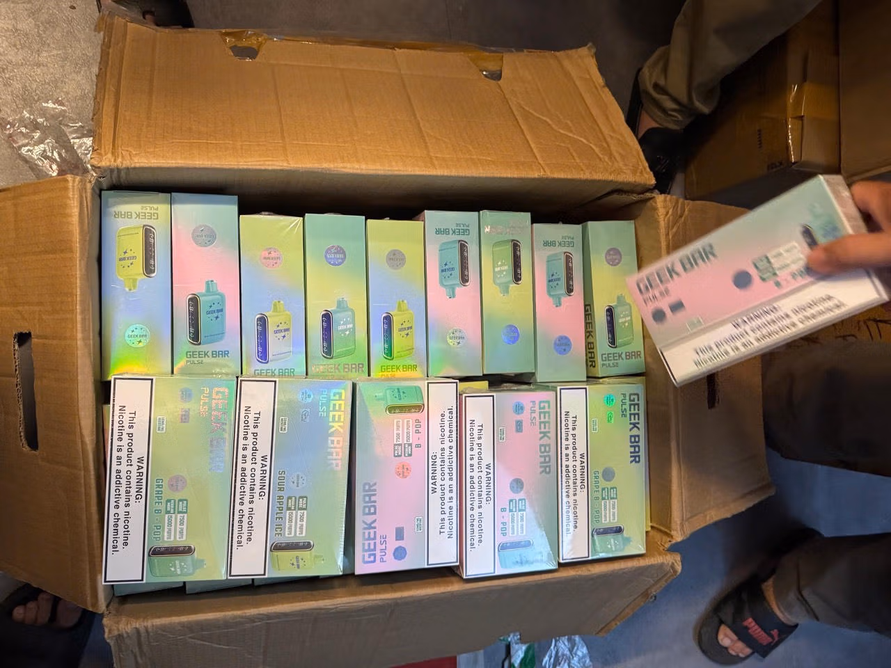 Qua kiểm tra và khám xét khẩn cấp, lực lượng chức năng thu giữ 28.657 sản phẩm gồm thuốc lá điện tử dùng một lần, máy hút thuốc lá điện tử, tinh dầu, linh kiện thay thế và túi nicotine, được đóng gói trong 140 thùng carton, cùng nhiều thiết bị điện tử, tài liệu, dữ liệu phục vụ hoạt động kinh doanh. Tổng giá trị hàng hóa vi phạm được xác định hơn 4,8 tỷ đồng.