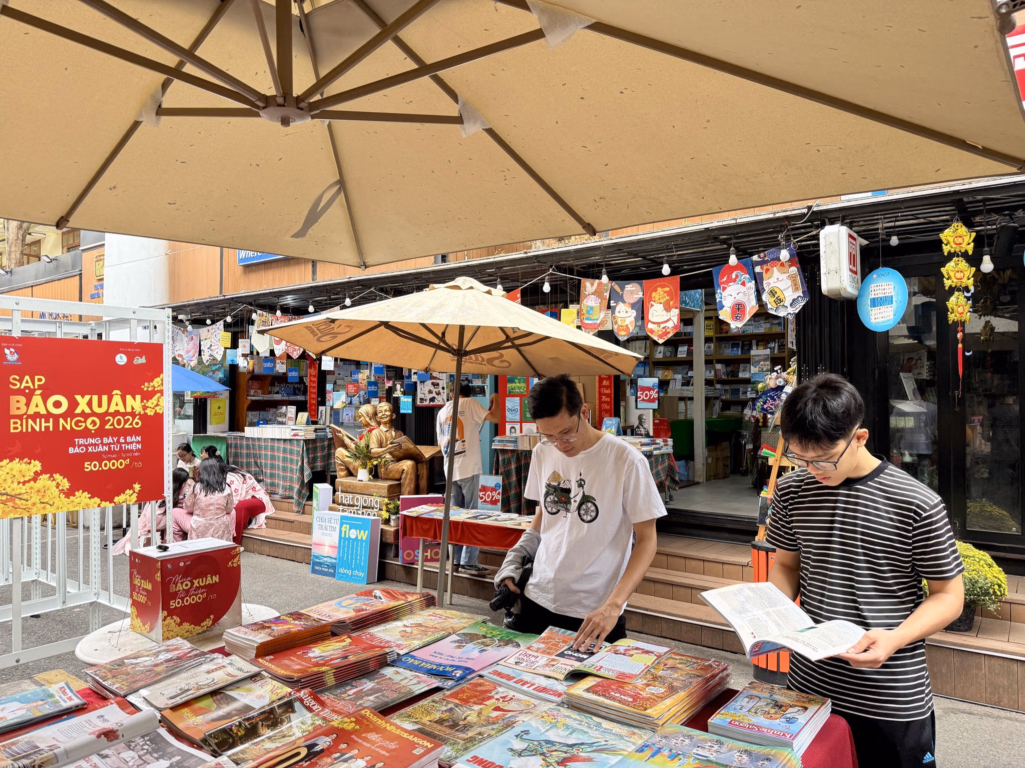 Đáng chú ý, bên cạnh chương trình “Lì xì sách Tết” diễn ra đúng vào mùng 1 Tết, tại Đường sách Nguyễn Văn Bình (phường Sài Gòn) còn trưng bày mô hình “Sạp báo Xuân không người bán” vừa để gìn giữ nét đẹp văn hóa đọc báo ngày xuân; vừa có ý nghĩa để gây quỹ hỗ trợ các nhà báo có hoàn cảnh khó khăn.