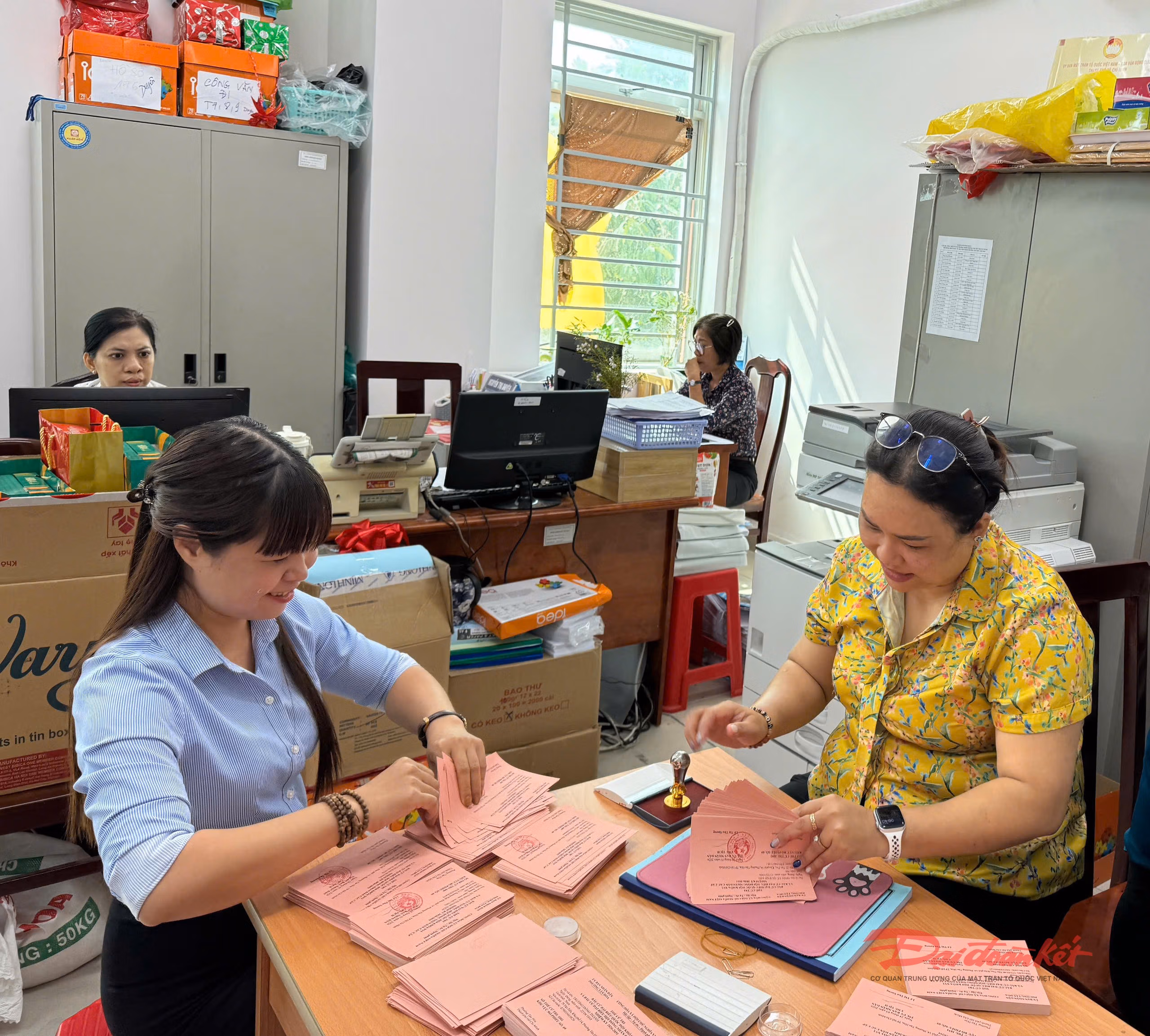 Tại trụ sở UBND phường, các cán bộ, công chức, đoàn viên và lực lượng dân quân thường trực đã cùng nhau kiểm tra kỹ lưỡng từng tập phiếu bầu, đảm bảo đúng số lượng, đúng quy định trước khi phân bổ đến các khu vực bỏ phiếu.