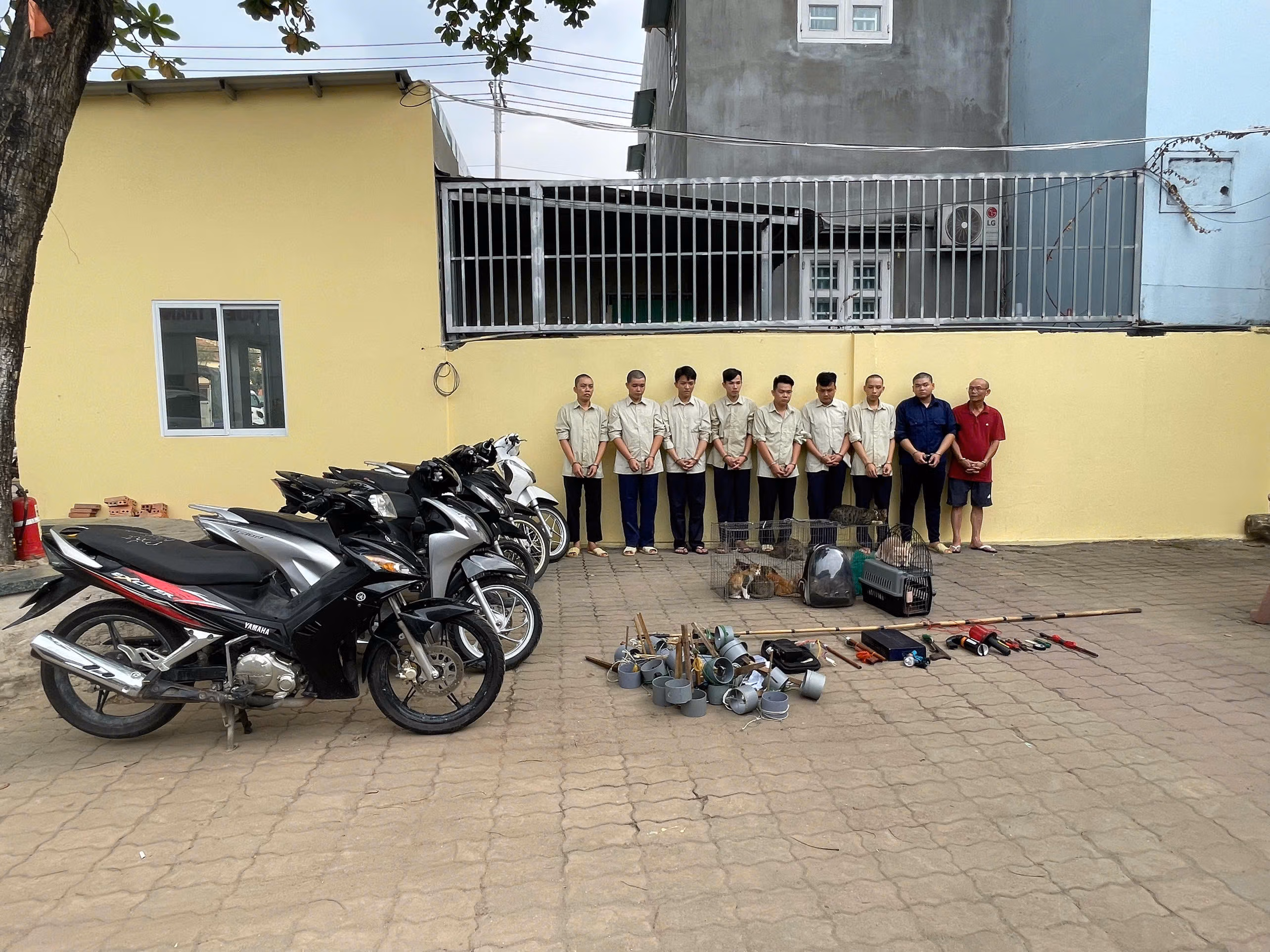 Tại hiện trường, Công an thu giữ 18 con mèo cùng nhiều dụng cụ, phương tiện phục vụ việc bắt trộm, vận chuyển và bình xịt hơi cay các loại mà đối tượng khai nhận dùng làm công cụ chống trả nếu bị phát hiện, rượt đuổi. Tiếp tục truy xét mở rộng, Công an triệu tập thêm các đối tượng trộm cắp, gồm: Nguyễn Gia Khánh (SN 2006) và Huỳnh Văn Sang (SN 1995, cùng ngụ TP Hồ Chí Minh). Các đối tượng khai nhận được Mai Quý Nhẫn (SN 1957) trao đổi đặt mèo trộm được từ các đối tượng để bán lại kiếm lời.