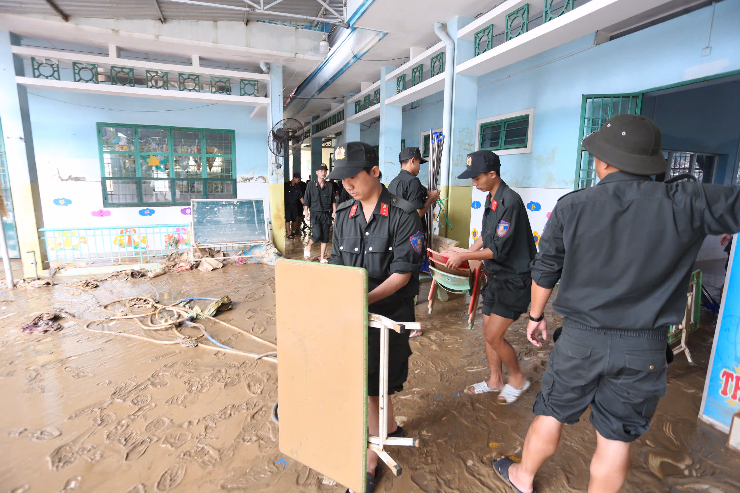 Ngay khi có mặt tại tỉnh Khánh Hòa, các lực lượng đã bắt tay vào hỗ trợ chính quyền và người dân địa phương khắc phục hậu quả lũ lụt. Riêng ngày 23/11, đội hình Cảnh sát Cơ động thuộc Công an TP Hồ Chí Minh đã triển khai việc dọn dẹp, khắc phục hậu quả sau lũ tại các địa bàn.