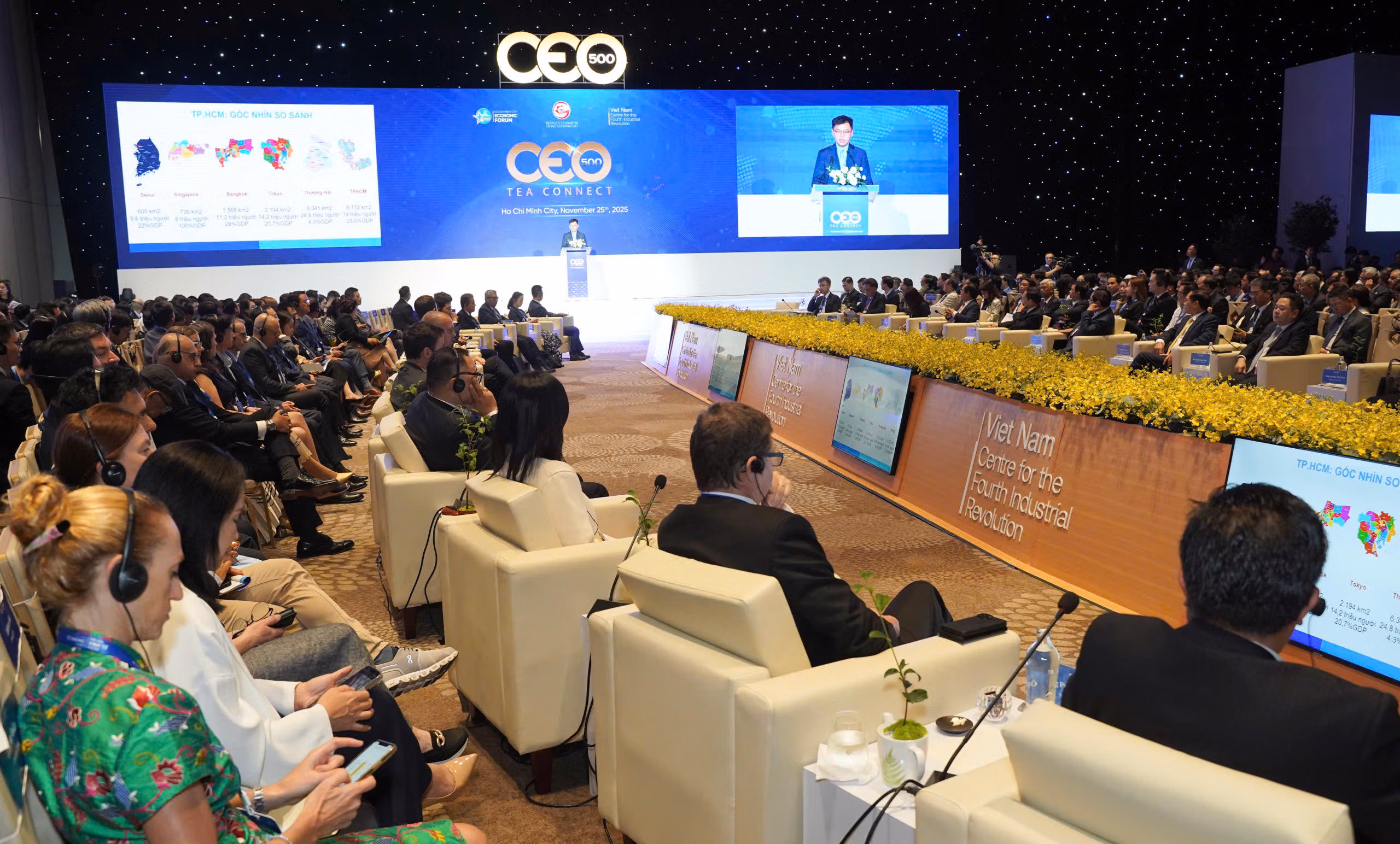 Chiều 25/11, Thủ tướng Phạm Minh Chính cùng lãnh đạo Thành ủy, UBND TP Hồ Chí Minh, đại diện các Bộ, ngành và nhiều tập đoàn công nghệ – tài chính trong nước và quốc tế tham dự chương trình CEO 500 – TEA CONNECT với chủ đề “TP Hồ Chí Minh – Hướng đến siêu đô thị quốc tế trong kỷ nguyên số”. Đây là chương trình nằm trong khuôn khổ Diễn đàn Kinh tế Mùa thu 2025.