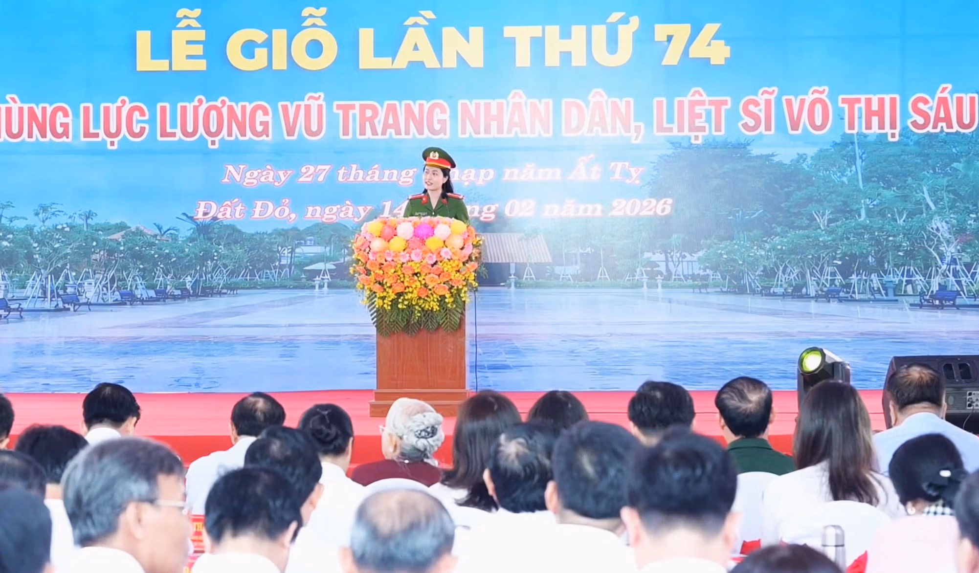 Tại buổi lễ, lãnh đạo xã Đất Đỏ ôn lại cuộc đời, sự nghiệp cách mạng của Anh hùng Lực lượng vũ trang nhân dân Võ Thị Sáu (1933-1952), người con ưu tú của quê hương Đất Đỏ.