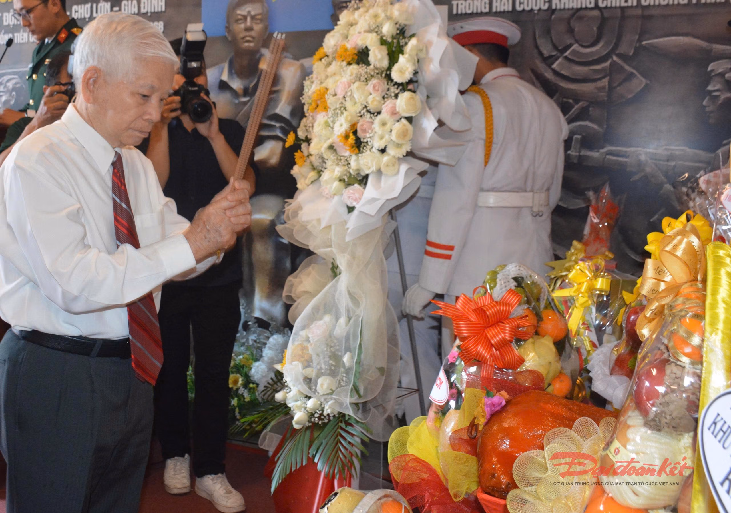 Trong không khí trang nghiêm, các đại biểu đã dâng hoa, dâng hương, dành phút mặc niệm bày tỏ lòng thành kính, tri ân sâu sắc công lao to lớn và sự hy sinh cao cả của các Anh hùng liệt sĩ đối với sự nghiệp đấu tranh giải phóng dân tộc, thống nhất đất nước.