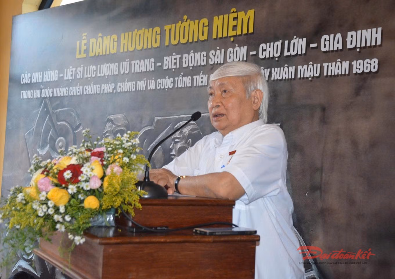 Phát biểu tại buổi lễ, ông Phan Xuân Biên, nguyên Trưởng Ban Tuyên giáo Thành ủy TP Hồ Chí Minh đã ôn lại truyền thống hào hùng của lực lượng Biệt động Sài Gòn - Gia Định. Ông Biên nhắc lại thời khắc đêm 31/1/1968, khi lời chúc Tết của Hồ Chí Minh vang lên như hiệu triệu, mở màn cuộc Tổng tiến công và nổi dậy Xuân Mậu Thân 1968. Trong chiến dịch này, các chiến sĩ Biệt động Sài Gòn đã tấn công, chiếm giữ nhiều mục tiêu trọng yếu như Dinh Độc Lập, Đại sứ quán Mỹ, Đài phát thanh, Bộ Tổng tham mưu…, góp phần tạo nên tiếng vang lớn trên trường quốc tế.