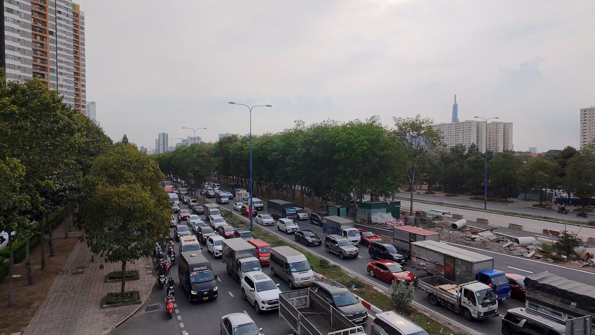 Một số tuyến đường như Mai Chí Thọ, Nguyễn Thị Định... bị ùn tắc vì cấm phương tiện xe gắn đi vào đường dẫn tuyến cao tốc TP Hồ Chí Minh-Long Thành-Dầu Giây.