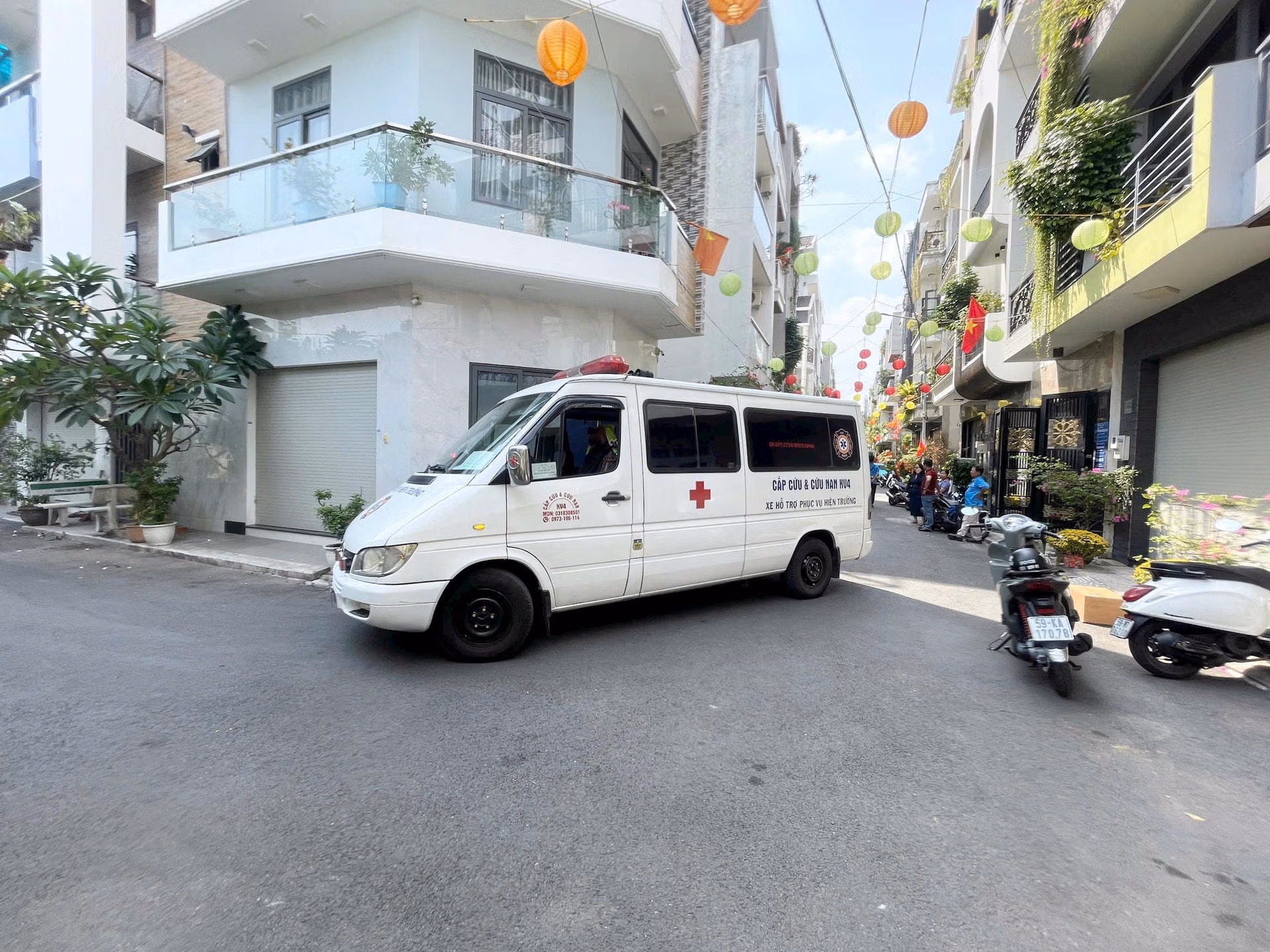 Nhân viên giao hàng cùng người dân xung quanh hiện trường nhanh chóng hô hoán mọi người biết, sau đó báo tin cho công an.