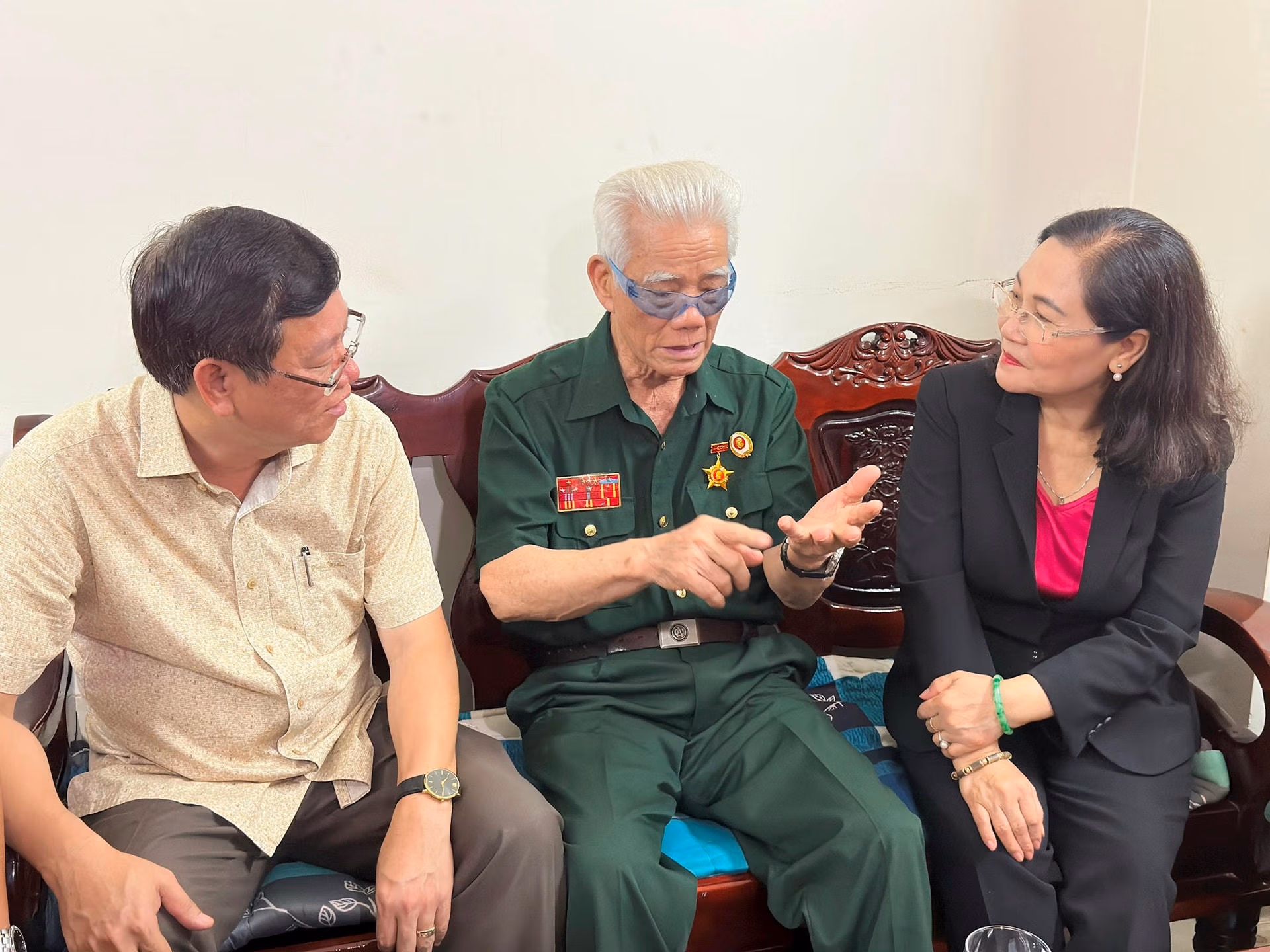 Tiếp đó, Chủ tịch HĐND TPHCM dẫn đầu đoàn đã đến thăm Đại tá Nguyễn Đình Xướng (90 tuổi, ngụ quận Bình Thạnh), từng tham gia chiến dịch Điện Biên Phủ trong vai trò là Trung đội Trưởng Trung đoàn 151, Sư đoàn 351.