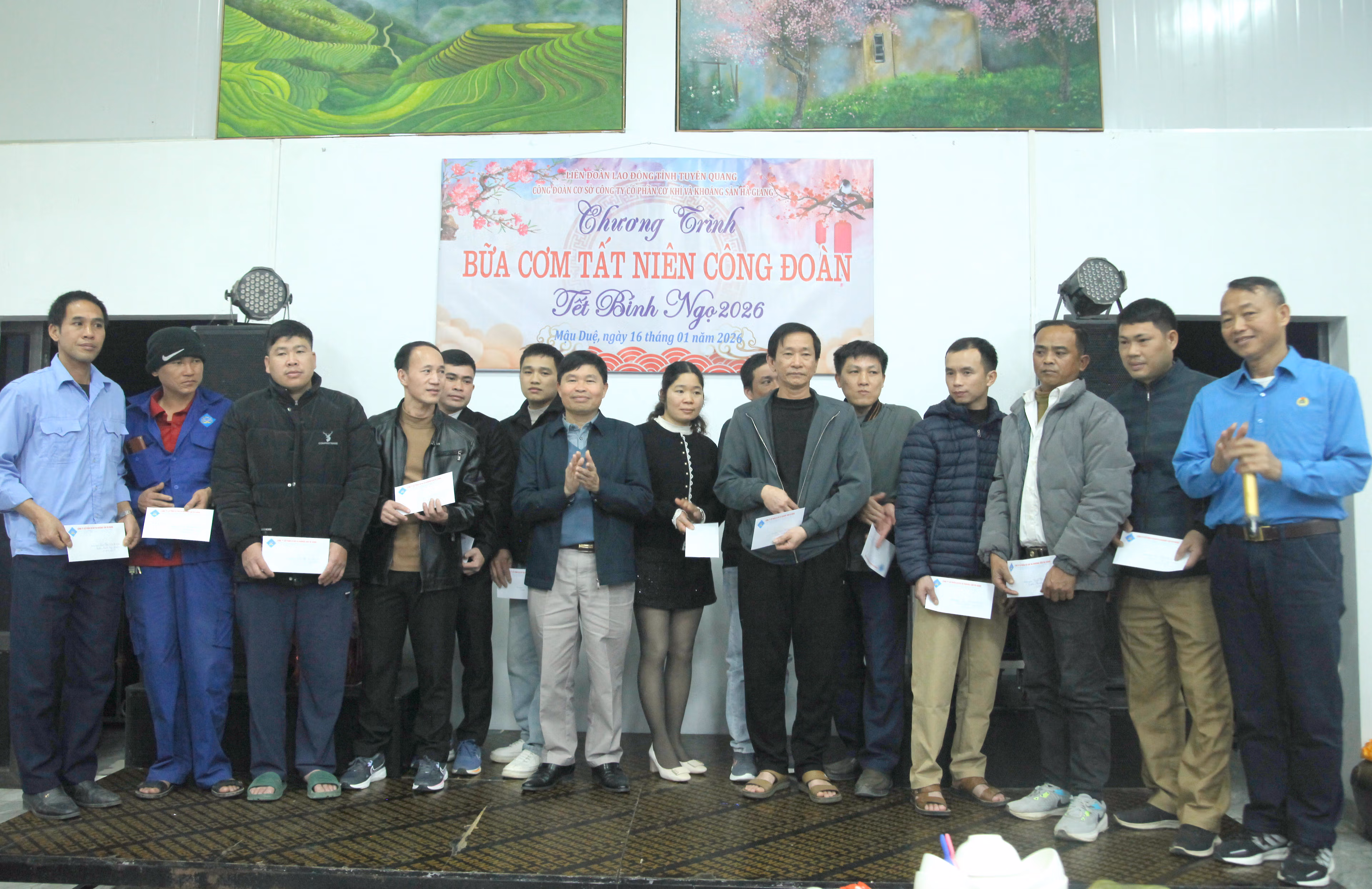 Ngay sau chương trình tuyên truyền, “Bữa cơm Công đoàn” do Công đoàn Công ty Cổ phần Cơ khí và Khoáng sản Hà Giang tổ chức đã để lại nhiều cảm xúc. Trong không khí ấm cúng, những mâm cơm được chuẩn bị chu đáo không chỉ là bữa ăn thường ngày, mà còn là sự quan tâm cụ thể, thiết thực của tổ chức Công đoàn đối với đời sống vật chất, tinh thần của công nhân.