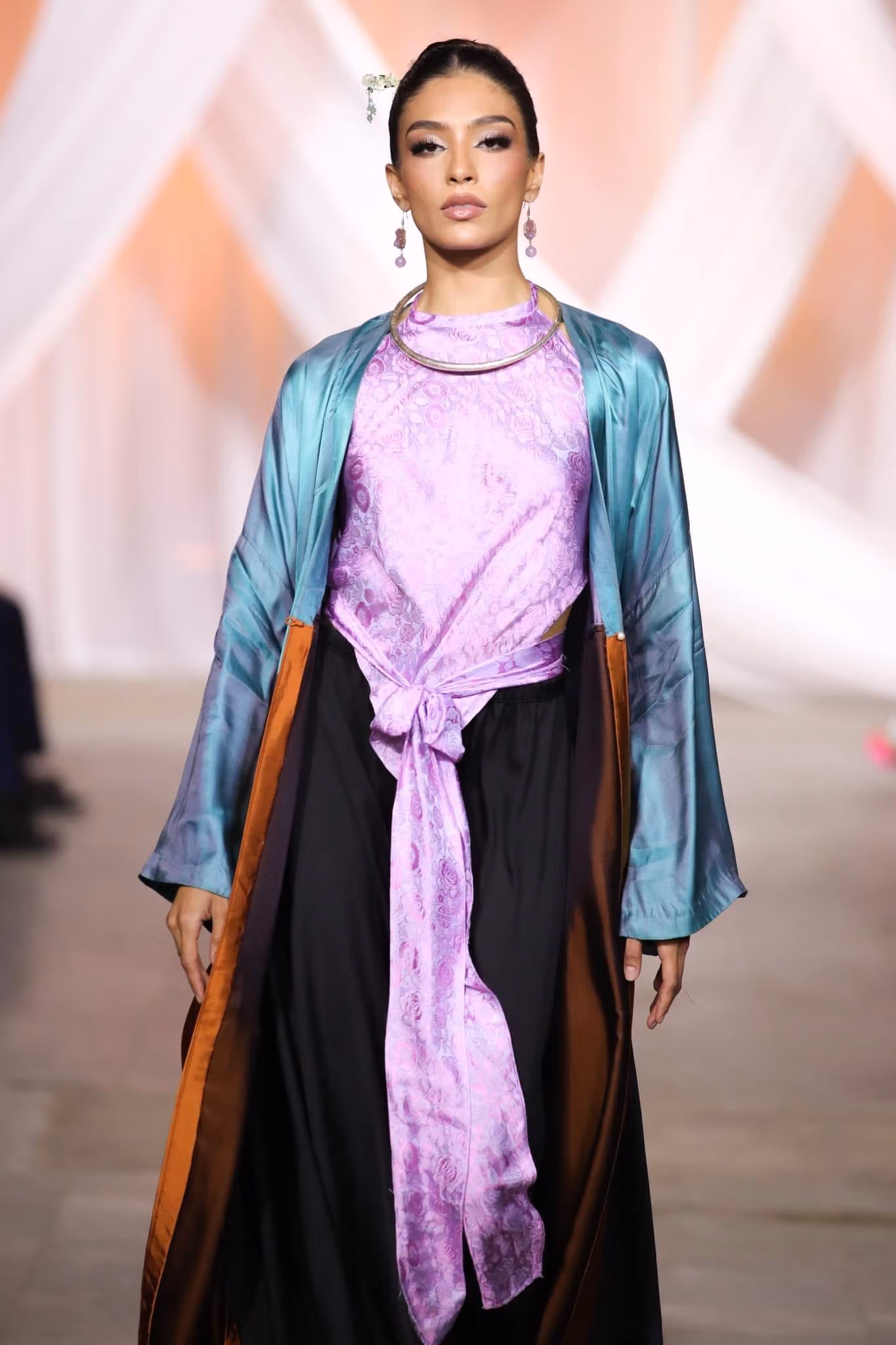 Nhiều bộ sưu tập gây tiếng vang gần đây xuất phát từ tinh thần ấy. Bộ áo dài cải biên của NTK Lê Hồng Hải – chất liệu đũi nhuộm tự nhiên, đường may thủ công – tạo hiệu ứng mạnh tại Tuần lễ Thời trang Trẻ Hà Nội. Trong khi đó, bộ sưu tập “Gió Đồng” của NTK Nguyễn Minh Trang biến áo bà ba thành thiết kế streetwear nhờ chất liệu linen, tông pastel và phom dáng nhẹ nhàng. Những sáng tạo này cho thấy cách tiếp cận tinh tế của các nhà thiết kế nữ: không phá bỏ truyền thống, mà lặng lẽ thổi vào đó hơi thở hiện đại.