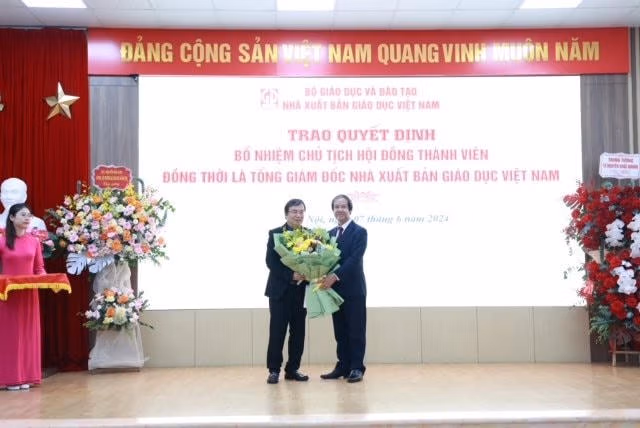 Sáng 7/6, tại Hà Nội, Bộ trưởng Bộ GDĐT Nguyễn Kim Sơn đã trao quyết định bổ nhiệm Chủ tịch Hội đồng thành viên đồng thời là Tổng giám đốc mới của Công ty TNHH một thành viên Nhà xuất bản Giáo dục Việt Nam (NXBGDVN)