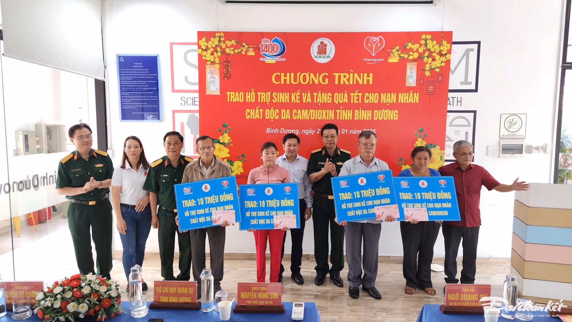 Được biết, mỗi suất hỗ trợ trị giá 10 triệu đồng và 60 phần quà Tết, mỗi phần gồm 1 triệu tiền mặt và quà nhu yếu phẩm ngày Tết cho các hội viên chất độc Da cam/Dioxin, đang sinh sống trên địa bàn tỉnh Bình Dương và Long An vượt qua khó khăn, bệnh tật.
