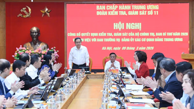 Ngày 9/3, Đoàn Kiểm tra, giám sát số 11 của Bộ Chính trị, Ban Bí thư, do đồng chí Trần Thanh Mẫn, Ủy viên Bộ Chính trị, Chủ tịch Quốc hội làm Trưởng đoàn, tổ chức hội nghị triển khai Quyết định kiểm tra, giám sát năm 2026 của Bộ Chính trị, Ban Bí thư đối với Ban Thường vụ Đảng ủy các cơ quan Đảng Trung ương.