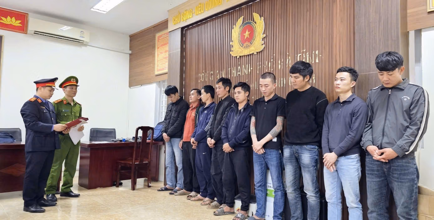 Các bị can Phạm Đình Việt (35 tuổi), Phạm Văn Hoàn (34 tuổi), Trịnh Hoàng Sơn (31 tuổi), Lê Tiến Hồng (29 tuổi), Lê Văn Hiếu (29 tuổi, cùng trú xã Mai Phụ) và Lê Ngọc Thái Hoà (27 tuổi, trú xã Lộc Hà) bị khởi tố về tội “Đánh bạc”.
