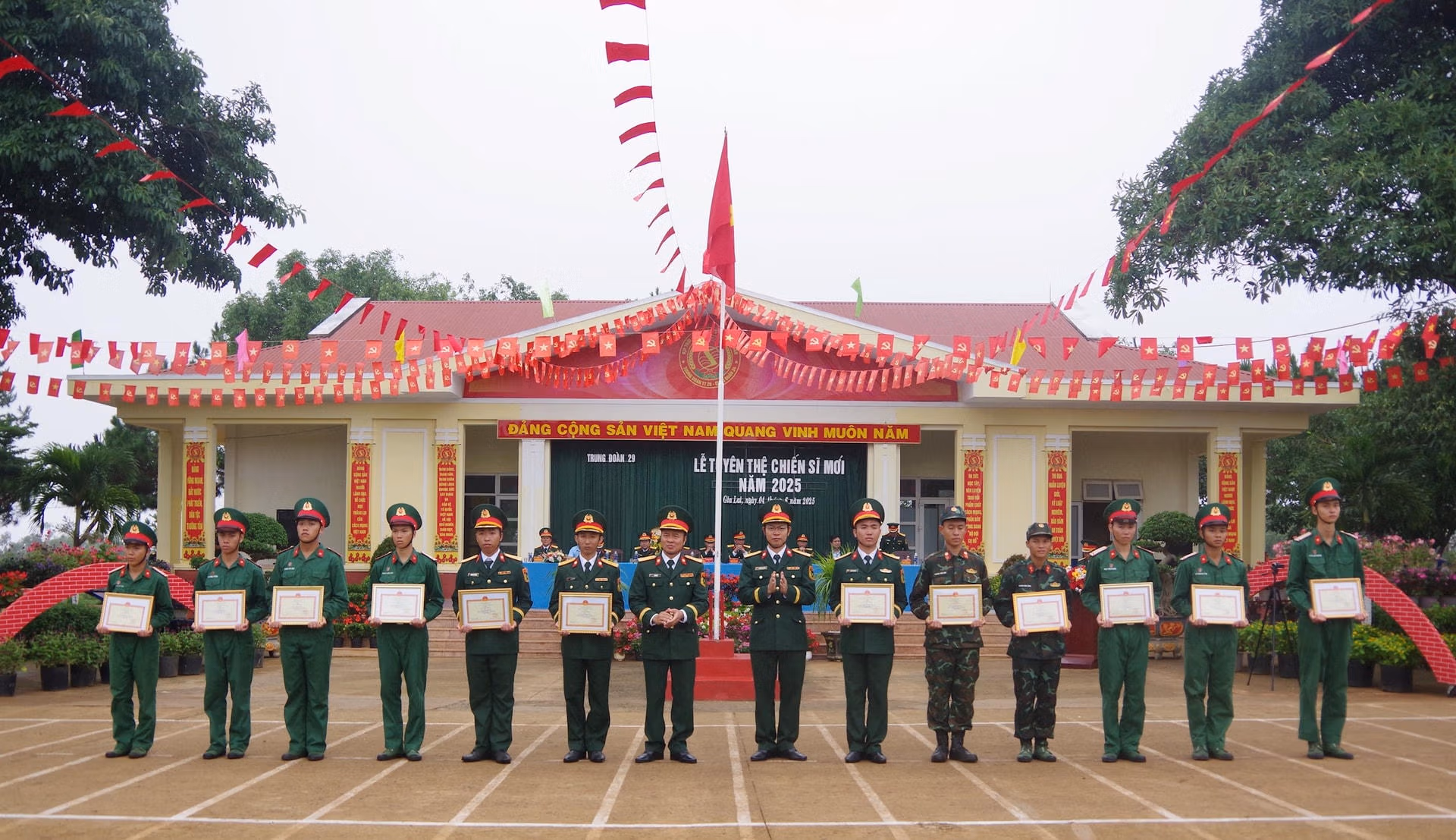 Ngày 4/6, hòa chung không khí của toàn Quân, Trung đoàn Thông tin 29, Quân đoàn 34 (huyện Đắk Đoa, tỉnh Gia Lai) tổ chức Lễ tuyên thệ chiến sĩ mới năm 2025.