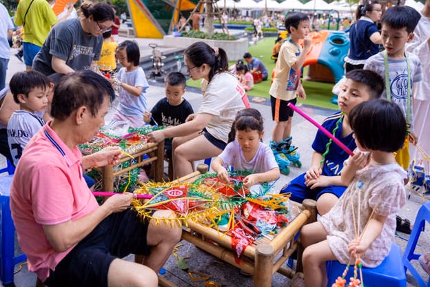Các khu vườn tại khu S đã biến thành không gian trải nghiệm sáng tạo, thu hút đông đảo cư dân với hàng loạt hoạt động tương tác hấp dẫn. Những workshop làm đèn lồng, bánh trung thu, mặt nạ giấy bồi luôn kín chỗ. Bé nào cũng háo hức được tự tay tạo nên món quà cho riêng mình: một chiếc bánh thơm ngọt, một chiếc đèn lồng lung linh hay chiếc mặt nạ đầy màu sắc.