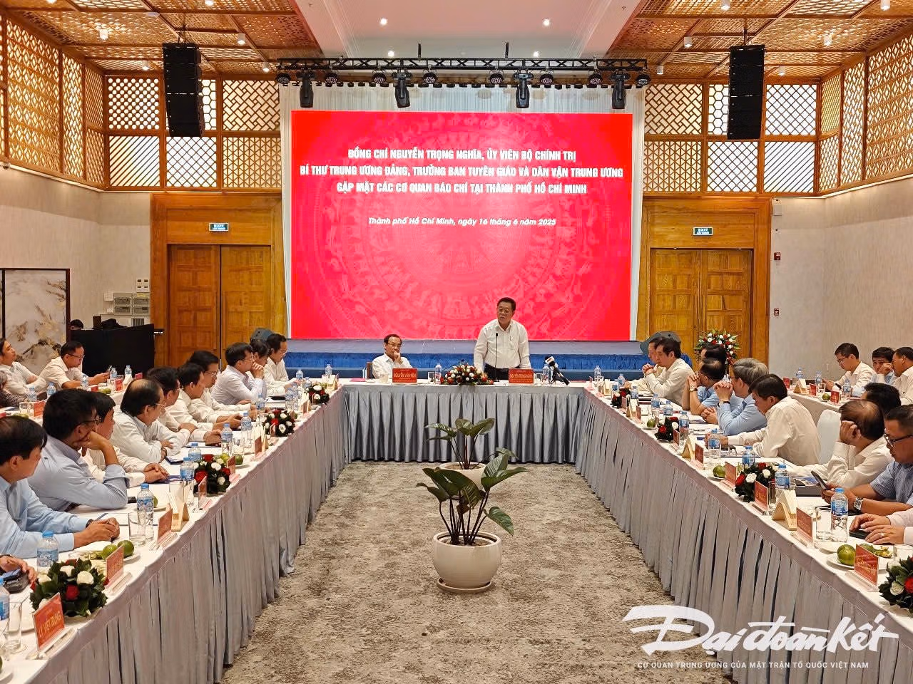 Chiều 16/6, Ủy viên Bộ Chính trị, Bí thư Trung ương Đảng, Trưởng Ban Tuyên giáo và Dân vận Trung ương - Nguyễn Trọng Nghĩa đã có buổi gặp mặt các cơ quan báo chí tại TP Hồ Chí Minh nhân kỷ niệm 100 năm Ngày báo chí cách mạng Việt Nam (21/6/1925-21/6/2025).
