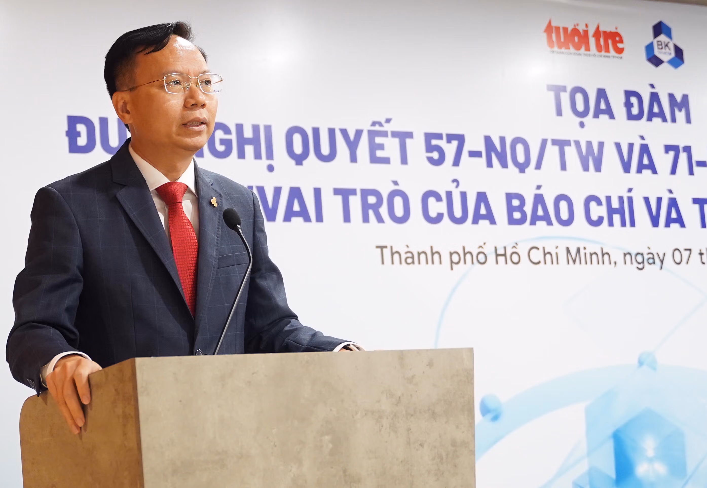 Phát biểu tại toạ đàm, ông Lê Thế Chữ, Tổng Biên tập báo Tuổi trẻ cho rằng Nghị quyết 57 và Nghị quyết 71 không chỉ là những văn bản định hướng mang tính chiến lược, mà là lời giải cho bài toán nâng cao năng suất lao động và năng lực cạnh tranh quốc gia. Tuy nhiên, từ chủ trương trên giấy đến thực tiễn sinh động tại các phòng thí nghiệm hay giảng đường là một khoảng cách cần được lấp đầy bằng các nỗ lực đồng bộ.