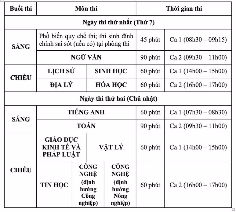 Đặc biệt, năm nay cũng là lần đầu tiên môn Tin học, Công nghệ, Giáo dục kinh tế và pháp luật được đưa vào kỳ thi, bên cạnh Toán, Ngữ văn, Tiếng Anh, Vật lý, Hóa học, Sinh học, Lịch sử và Địa lý như mọi năm. Thí sinh có thể đăng ký thi tối thiểu 3 môn, tối đa 7 môn.