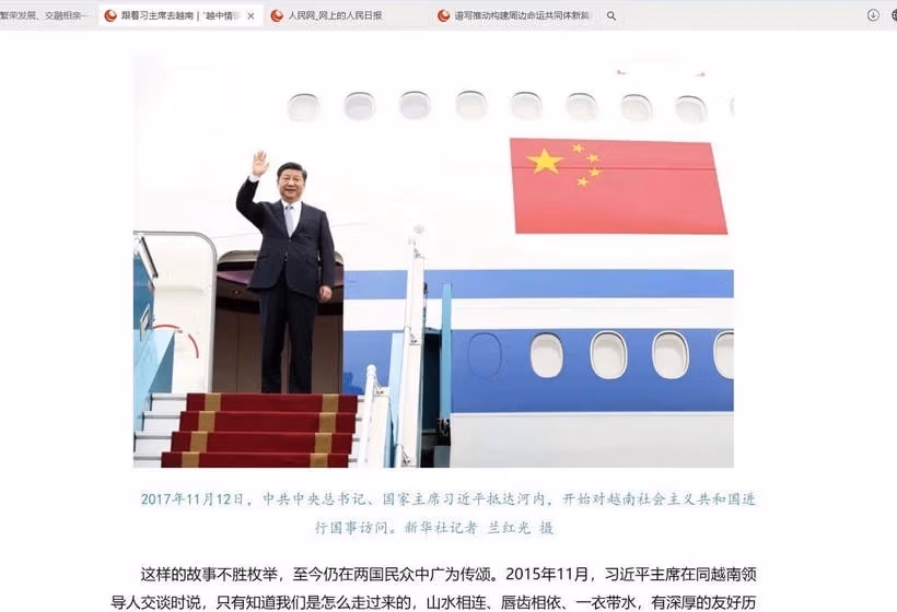 “Mối tình thắm thiết Việt-Trung, vừa là đồng chí, vừa là anh em” là tiêu đề bài viết trên Nhân dân nhật báo - cơ quan ngôn luận của Đảng Cộng sản Trung Quốc trước thềm chuyến thăm cấp Nhà nước của Tổng Bí thư, Chủ tịch Trung Quốc Tập Cận Bình đến Việt Nam.