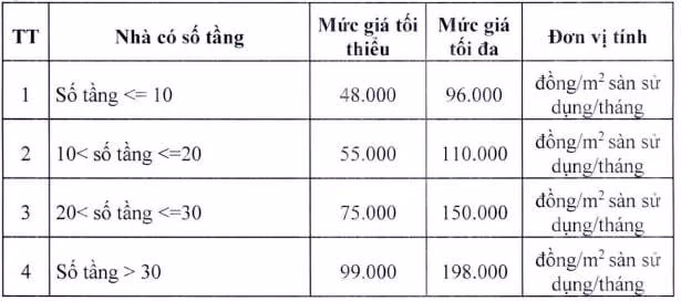 Theo đó, khung giá cho thuê nhà ở xã hội được đầu tư xây dựng không bằng vốn đầu tư công, nguồn tài chính công đoàn trên địa bàn thành phố Hà Nội được quy định như sau:
