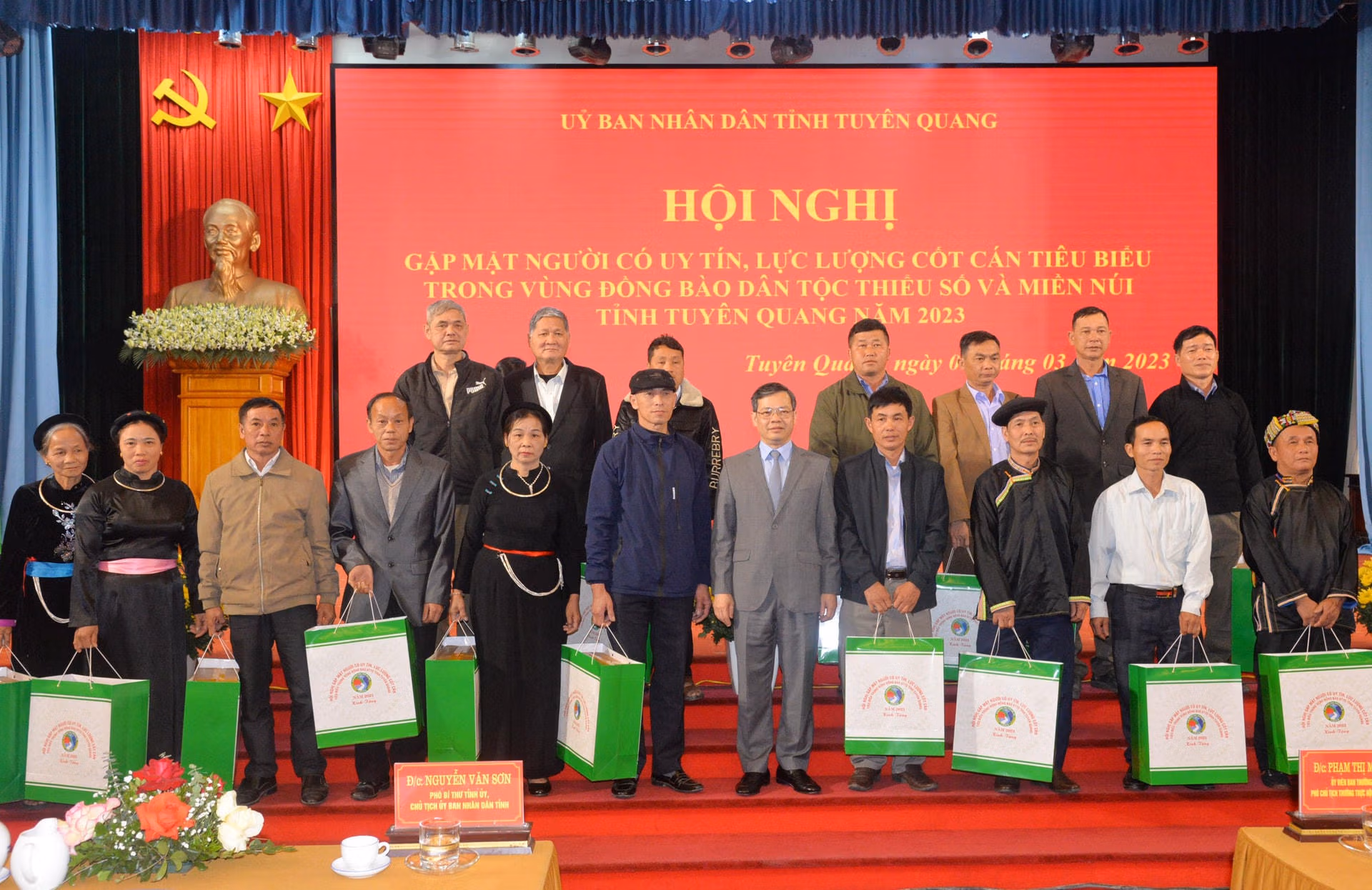 Dự hội nghị có các đồng chí: Nguyễn Văn Sơn, Phó Bí thư Tỉnh ủy, Chủ tịch UBND tỉnh; Phạm Thị Minh Xuân, Ủy viên Ban Thường vụ Tỉnh ủy, Phó Chủ tịch Thường trực HĐND tỉnh; Nguyễn Hưng Vượng, Ủy viên Ban Thường vụ Tỉnh ủy, Trưởng Ban Dân vận Tỉnh ủy, Chủ tịch Ủy ban MTTQ tỉnh; Nguyễn Thế Giang, Ủy viên BCH Đảng bộ tỉnh, Phó Chủ tịch UBND tỉnh; lãnh đạo sở, ban, ngành của tỉnh; lãnh đạo các huyện, thành phố và 255 người có uy tín, lực lượng cốt cán tiêu biểu trên địa bàn tỉnh Tuyên Quang.