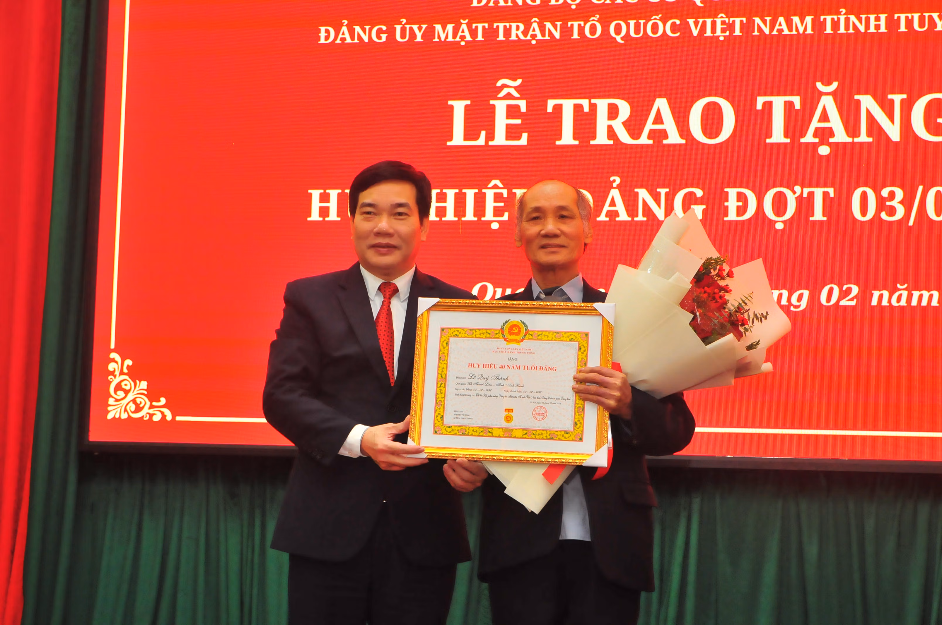 Lễ trao tặng diễn ra trong không khí trang nghiêm, cảm xúc, thể hiện sự trân trọng của Đảng, Nhà nước và Mặt trận Tổ quốc đối với những đóng góp thầm lặng nhưng bền bỉ của các đảng viên qua nhiều giai đoạn cách mạng. Huy hiệu Đảng không chỉ là phần thưởng cao quý mà còn là biểu tượng của niềm tin, của danh dự và trách nhiệm của người đảng viên cộng sản.