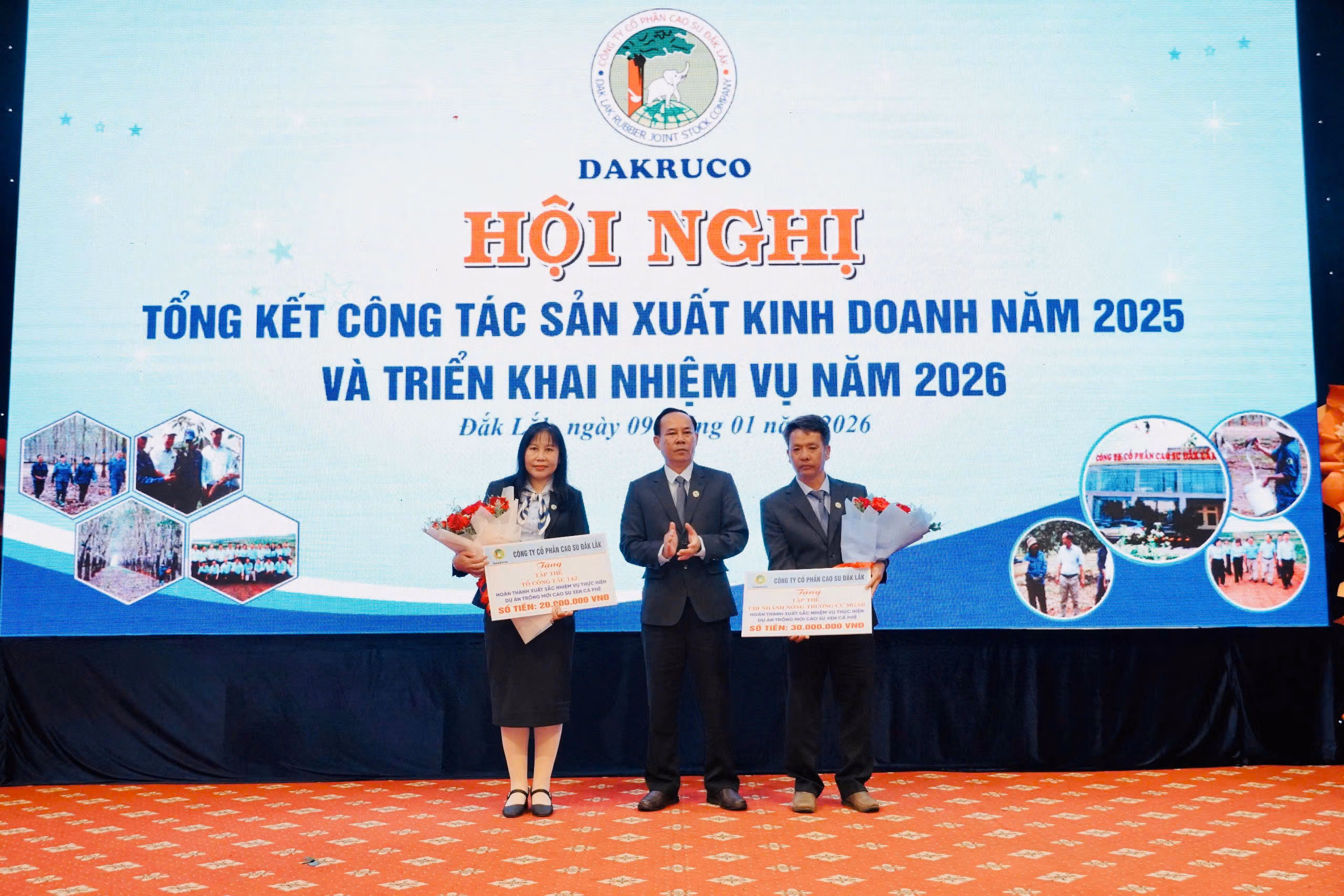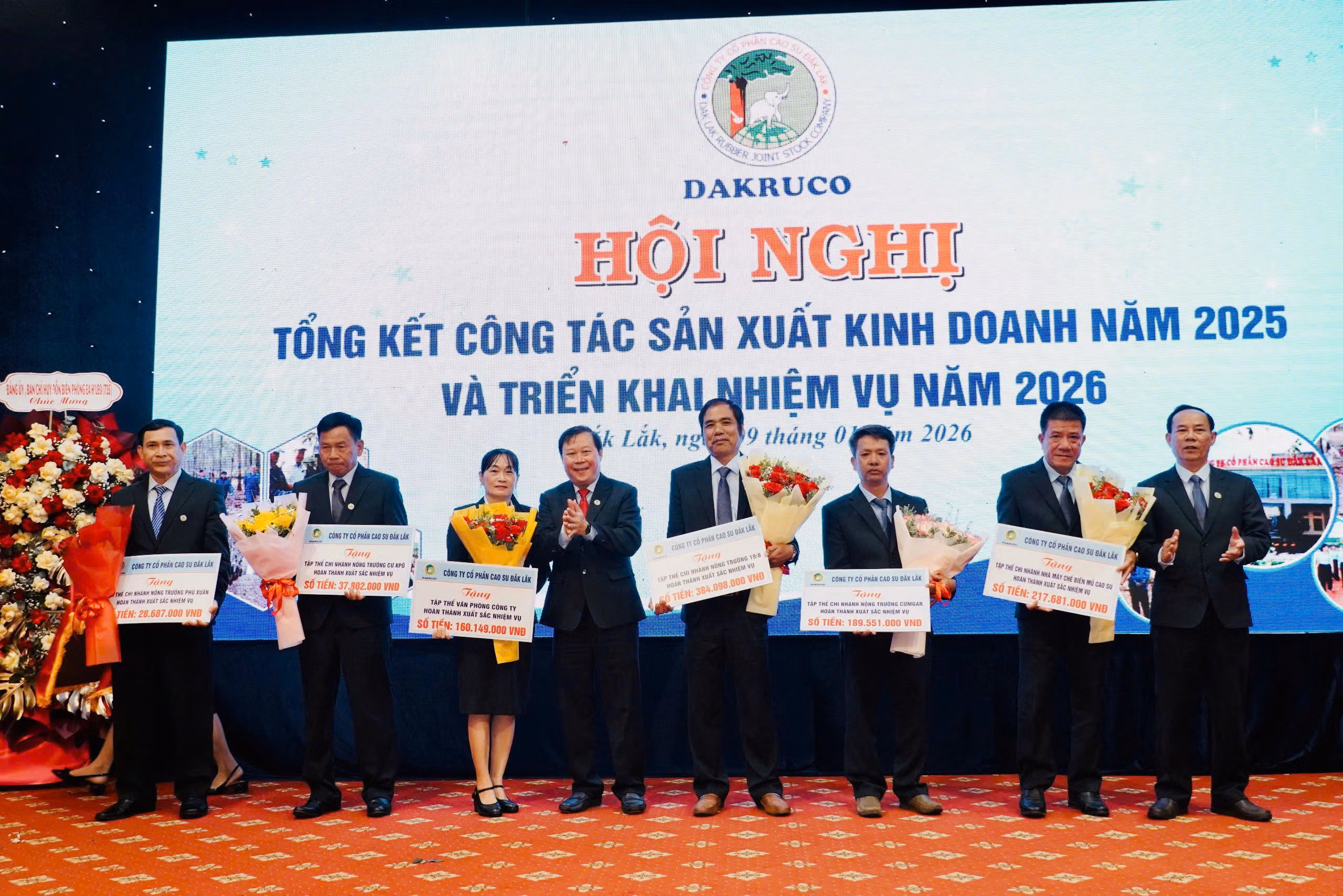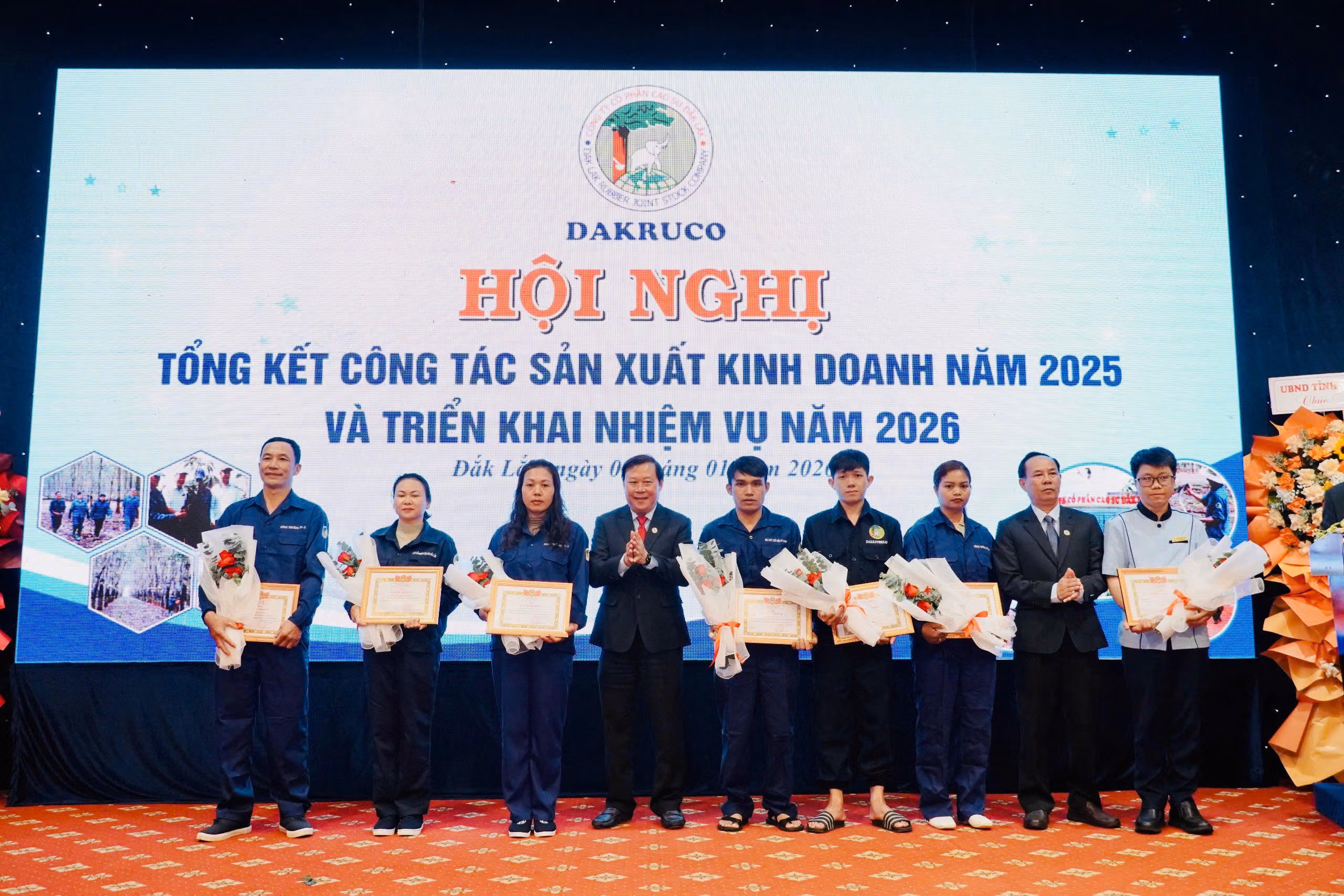 Nhân dịp này, DAKRUCO đã khen thưởng 36 tập thể và 25 cá nhân có thành tích xuất sắc trong năm 2025, qua đó tiếp thêm động lực để toàn hệ thống tiếp tục nỗ lực, đổi mới và vững bước trên chặng đường phát triển phía trước.
