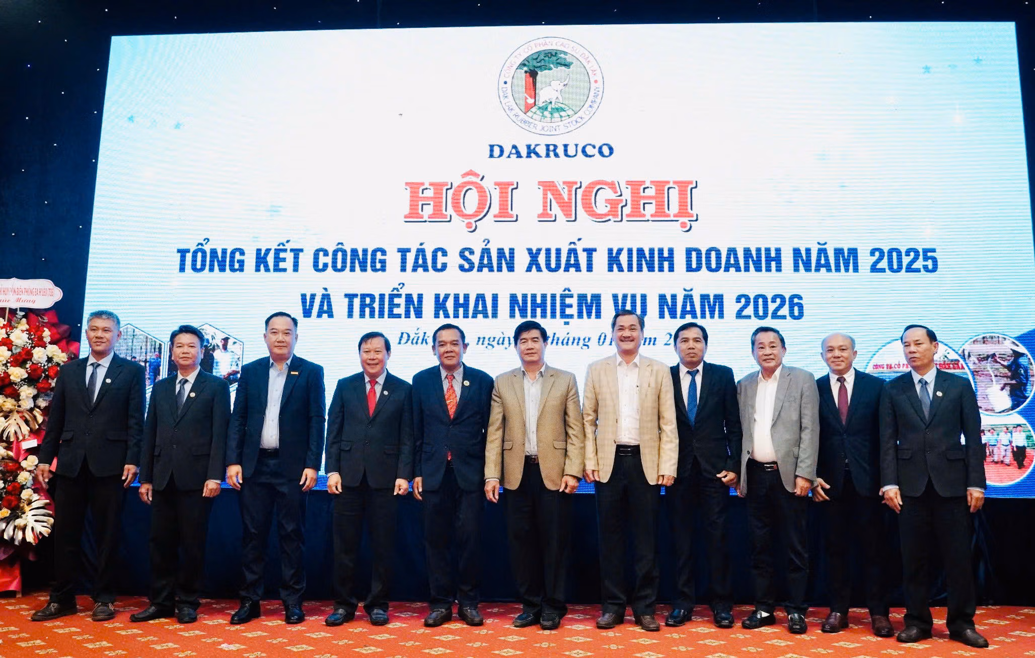 Sự đồng hành của lãnh đạo tỉnh và khát vọng giai đoạn 2026–2030Phát biểu tại Hội nghị, Phó Chủ tịch UBND tỉnh Đắk Lắk Nguyễn Thiên Văn ghi nhận và đánh giá cao những nỗ lực, kết quả toàn diện mà DAKRUCO đạt được trong năm 2025. Lãnh đạo tỉnh khẳng định, trong bối cảnh còn nhiều khó khăn, việc Công ty duy trì sản xuất ổn định, kinh doanh có lãi, chăm lo tốt đời sống người lao động và thực hiện đầy đủ nghĩa vụ với Nhà nước là rất đáng trân trọng.