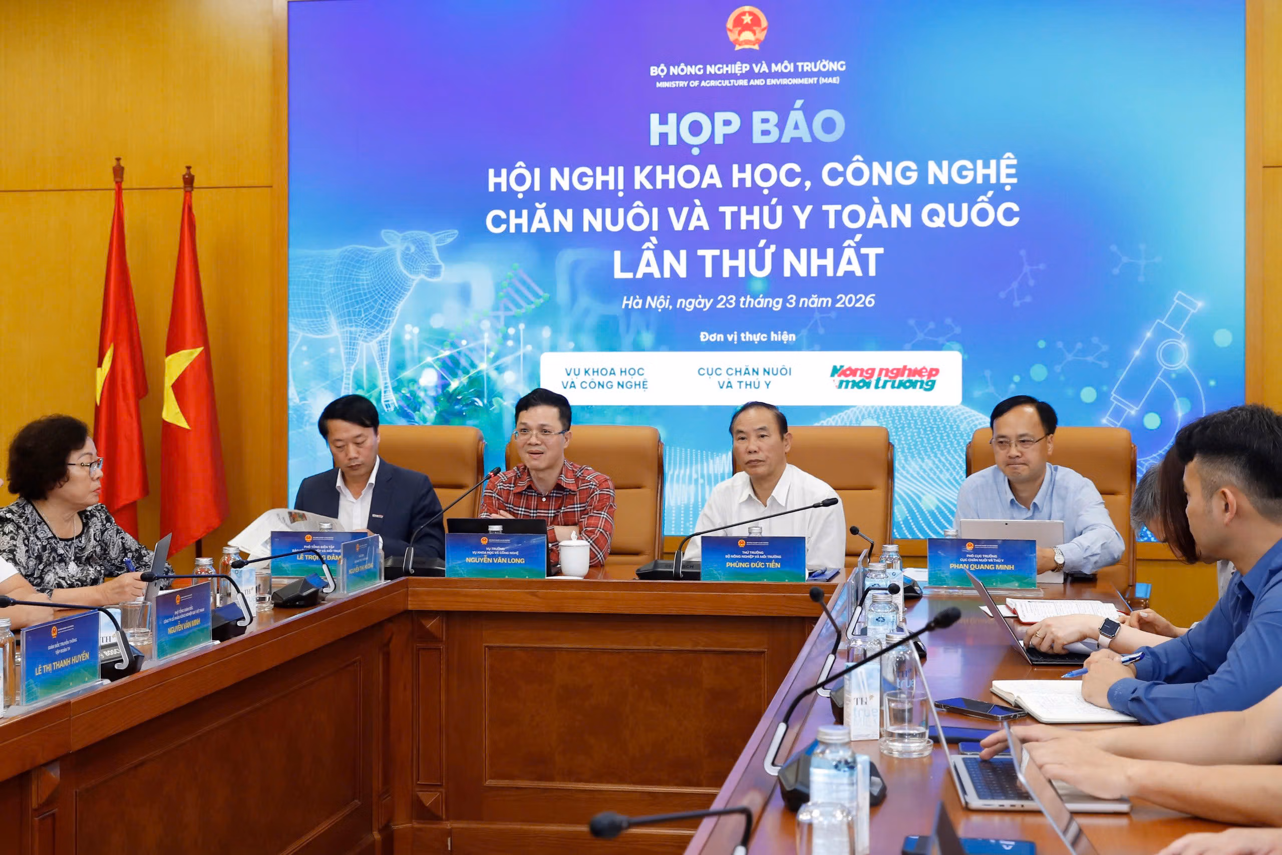 Chiều ngày 23/3/2026, Bộ Nông nghiệp và Môi trường đã tổ chức họp báo cung cấp thông tin về Hội nghị Khoa học, Công nghệ Chăn nuôi và Thú y toàn quốc lần thứ nhất. Theo đó, hội nghị dự kiến diễn ra từ ngày 27 - 28/3/2026 tại Trung tâm Hội nghị quốc gia, Hà Nội.