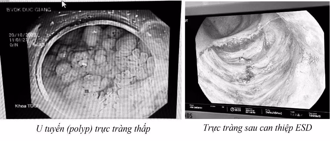 Theo đó, Bệnh nhân T.T.S. (trú tại Đằng Giang, Ngô Quyền, Hải Phòng) đi khám vì đau bụng âm ỉ vùng hạ vị kèm thi thoảng có đợt rối loạn tiêu hóa. Bệnh nhân được chỉ định làm nội soi đại trực tràng phát hiện polyp lan tỏa (LST - G) ở trực tràng thấp - ống hậu môn, kích thước 5cm, bác sĩ nội soi đã sinh thiết làm giải phẫu bệnh có kết quả u tuyến ống loạn sản độ thấp - vừa.