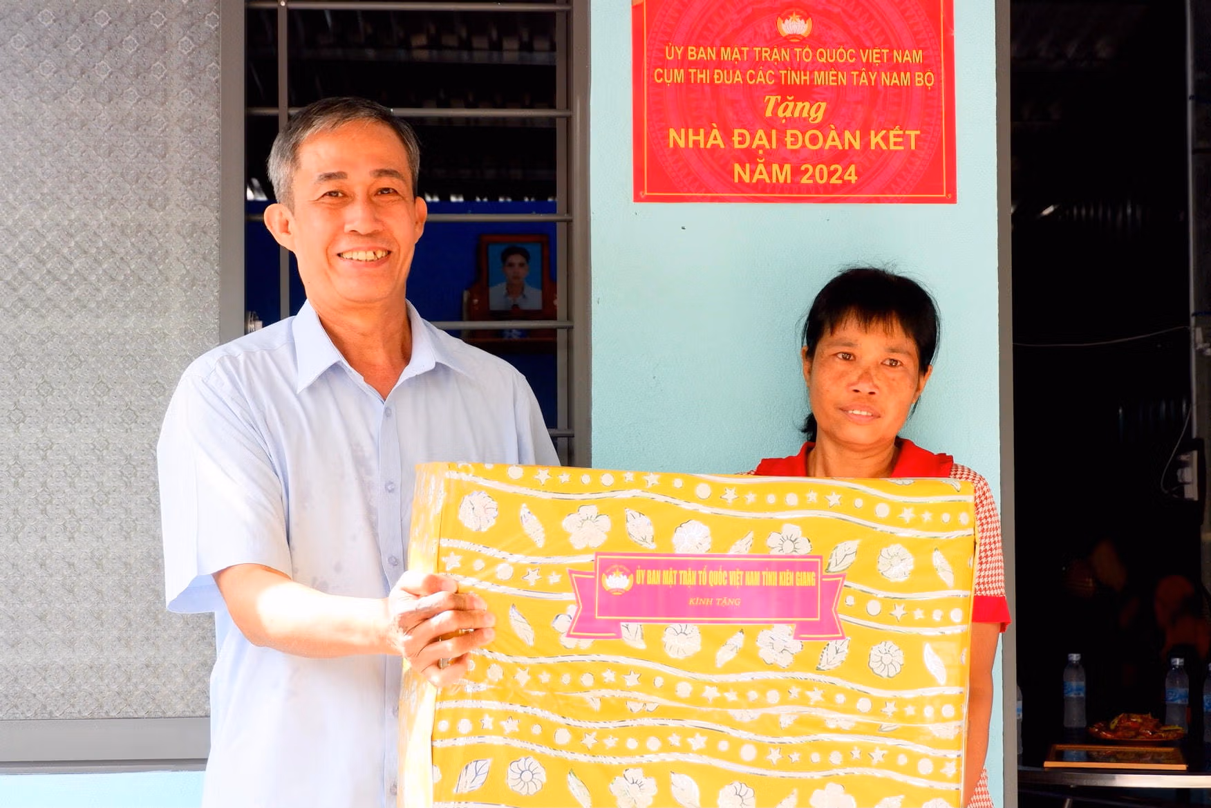 Cũng trong chiều 8/12, Cụm thi đua UBMTTQ Việt Nam các tỉnh miền Tây Nam Bộ phối hợp Ban Thường trực UBMTTQ Việt Nam TP Hà Tiên tổ chức bàn giao 2 căn nhà đại đoàn kết cho 2 hộ dân có hoàn cảnh khó khăn.