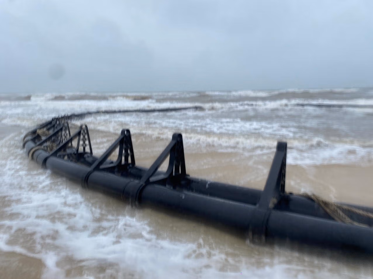 Theo đó, vật thể này gồm một hệ thống ống nhựa lớn màu đen, được gắn kết với lại với nhau rất chắc chắn. Theo nhận định ban đầu, có thể đây là hệ thống nuôi trồng thủy sản.