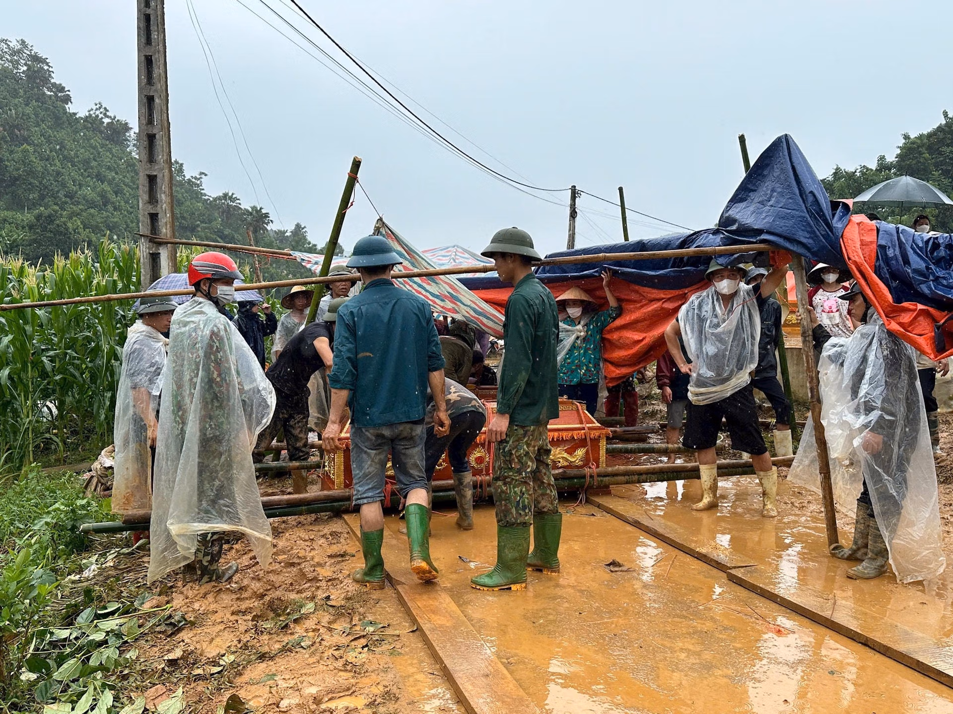 Về ngôi làng bị san phẳng trong nước lũ ở Lào Cai Thứ Tư 11/09/2024 16:39 (GMT+7) Tính đến 14h ngày 11/9, lũ quét ở Làng Nủ (xã Phúc Khánh, huyện Bảo Yên, Lào Cai) đã khiến 37 nhà bị san phẳng, 30 người chết, 17 người bị thương và 65 người mất tích. Dù đã được cảnh báo nguy hiểm, nhưng nhóm phóng viên vẫn quyết định nhờ người đi xe máy đưa vào Làng Nủ. Trên đường đi rất vất vả, nguy hiểm luôn rình rập. Ảnh: Toàn Hằng.Chủ tịch UBND tỉnh Lào Cai Trịnh Xuân Trường đang lên phương án, chỉ đạo các đơn vị tham gia cứu hộ. Ảnh: Toàn Hằng.Lãnh đạo tỉnh Lào Cai trực tiếp có mặt tại hiện trường để chỉ đạo tìm kiếm cứu hộ, cứu nạn, động viên người dân. Ảnh: Toàn Hằng.Làng Nủ với 37 hộ dân đã bị san phẳng, có những chỗ đất vùi lấp cả chục mét nên công cuộc tìm kiếm người mất tích gặp khó khăn. Ảnh: Toàn Hằng.Giờ Làng Nủ chỉ còn là đống đổ nát. Ảnh: Toàn Hằng.Những gương mặt thất thần của những người thoát nạn và có người thân gặp nạn. Ảnh: Toàn Hằng.Hàng trăm người dân, cán bộ chiến sỹ, tình nguyện viên đã được huy động để tìm kiếm người mất tích. Ảnh: Toàn Hằng.Những chiếc quan tài đã được huy động để lo an táng cho nạn nhân. Ảnh: Toàn Hằng.Một thi thể vừa được lực lượng tìm kiếm tìm thấy. Ảnh: Toàn Hằng.Hàng hóa cứu trợ cũng đã đến được hiện trường để hỗ trợ người dân và lực lượng tìm kiếm. Ảnh: Toàn Hằng.Bước đầu tỉnh Lào Cai hỗ trợ mỗi người bị tử vong 25 triệu đồng và mỗi người bị thương 5 triệu đồng. Ảnh: Toàn Hằng. Toàn Hằng