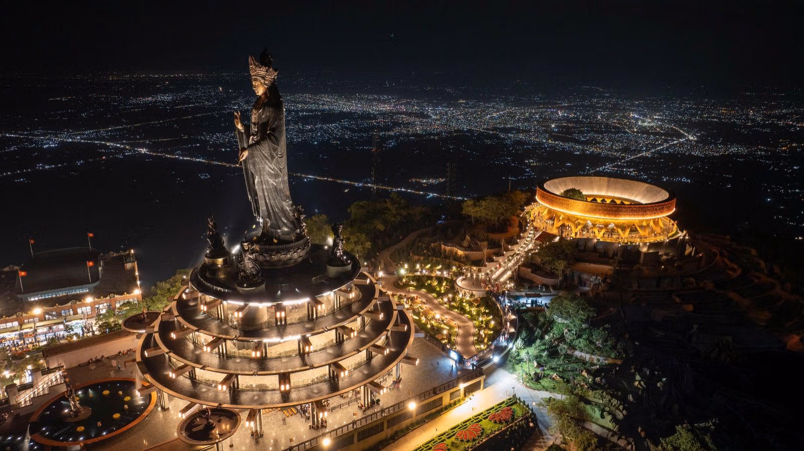 Khi hoàng hôn buông xuống, núi Bà Đen khoác lên mình diện mạo huyền ảo với hàng nghìn ánh đèn lấp lánh. Đặc biệt, show nhạc nước tại khu vực đại tượng Bồ Tát Di Lặc cùng hệ thống thác nước nhân tạo đổ tràn kỳ vĩ, kết hợp cùng hơn 1.080 vòi phun làm nên một màn trình diễn choáng ngợp.