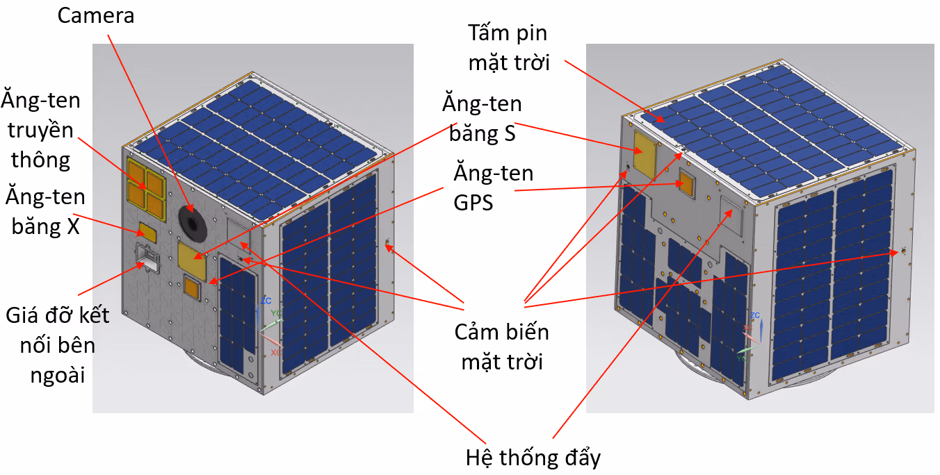 Hai phân hệ then chốt được nhóm phát triển là máy tính điều khiển trung tâm, đảm nhiệm chức năng xử lý lệnh, giám sát và phân phối dữ liệu, cùng hệ thống thông tin băng S ứng dụng cách tiếp cận vô tuyến định nghĩa bằng phần mềm (SDR), giúp linh hoạt trong truyền nhận và dễ nâng cấp bằng phần mềm mà không cần thay đổi phần cứng. Đề tài cũng mở hướng nghiên cứu hệ thống đẩy điện cho vệ tinh nhỏ, phục vụ điều chỉnh quỹ đạo chính xác trong những phiên bản tiếp theo.