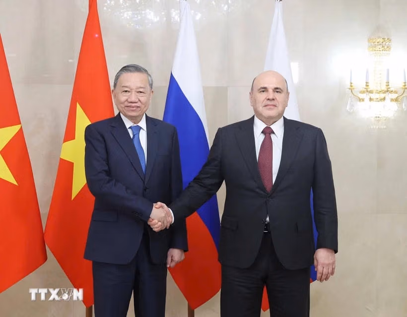Thủ tướng Mikhail Mishustin chào mừng Tổng Bí thư Tô Lâm và Đoàn Đại biểu Cấp cao Việt Nam thăm Nga, đánh giá cao ý nghĩa quan trọng của chuyến thăm, nhất là trong bối cảnh hai nước kỷ niệm các sự kiện lịch sử trọng đại tại mỗi nước và trong quan hệ song phương.