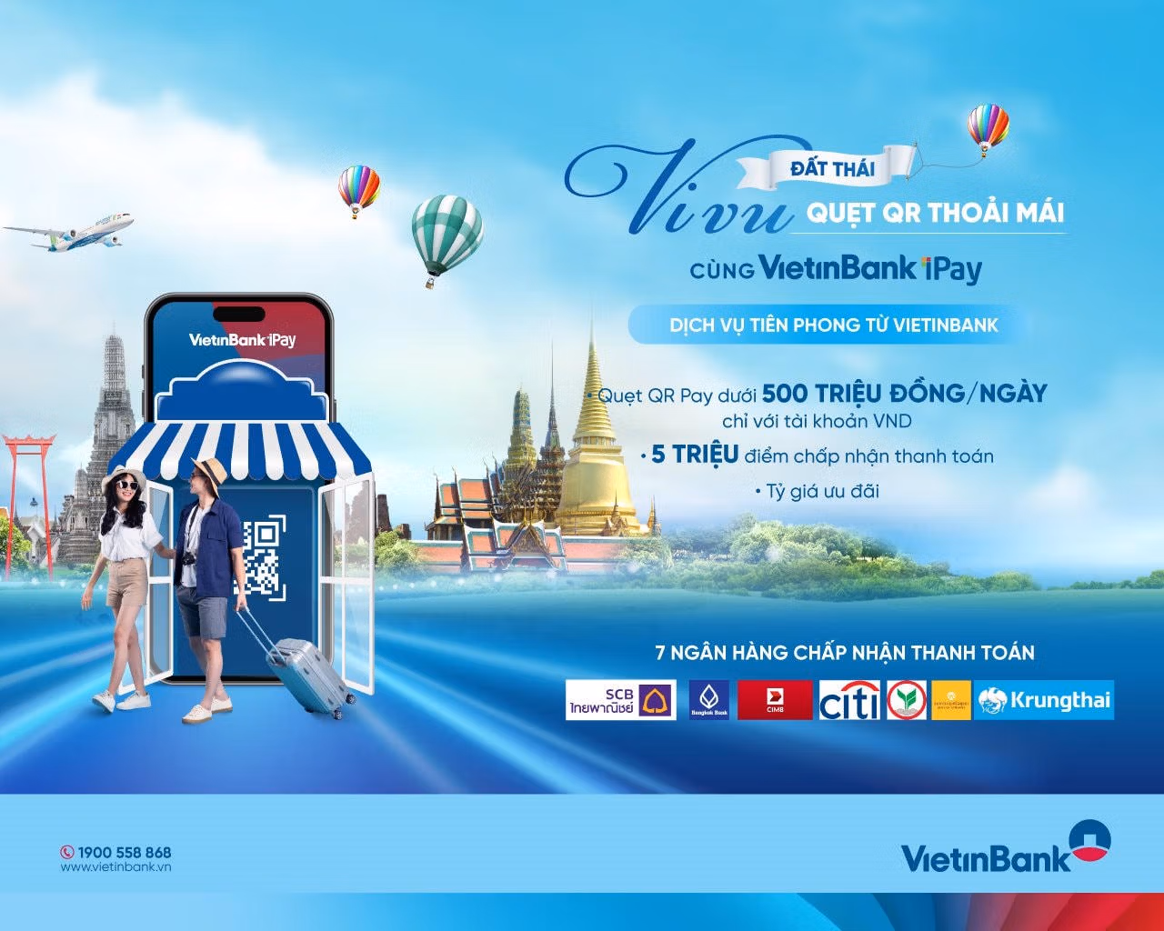 Đồng hành cùng khách du lịch Thái Lan, VietinBank ra mắt sản phẩm thanh toán xuyên biên giới bằng mã QR Pay, giúp khách hàng dễ dàng chi tiêu, mua sắm tại Thái Lan.