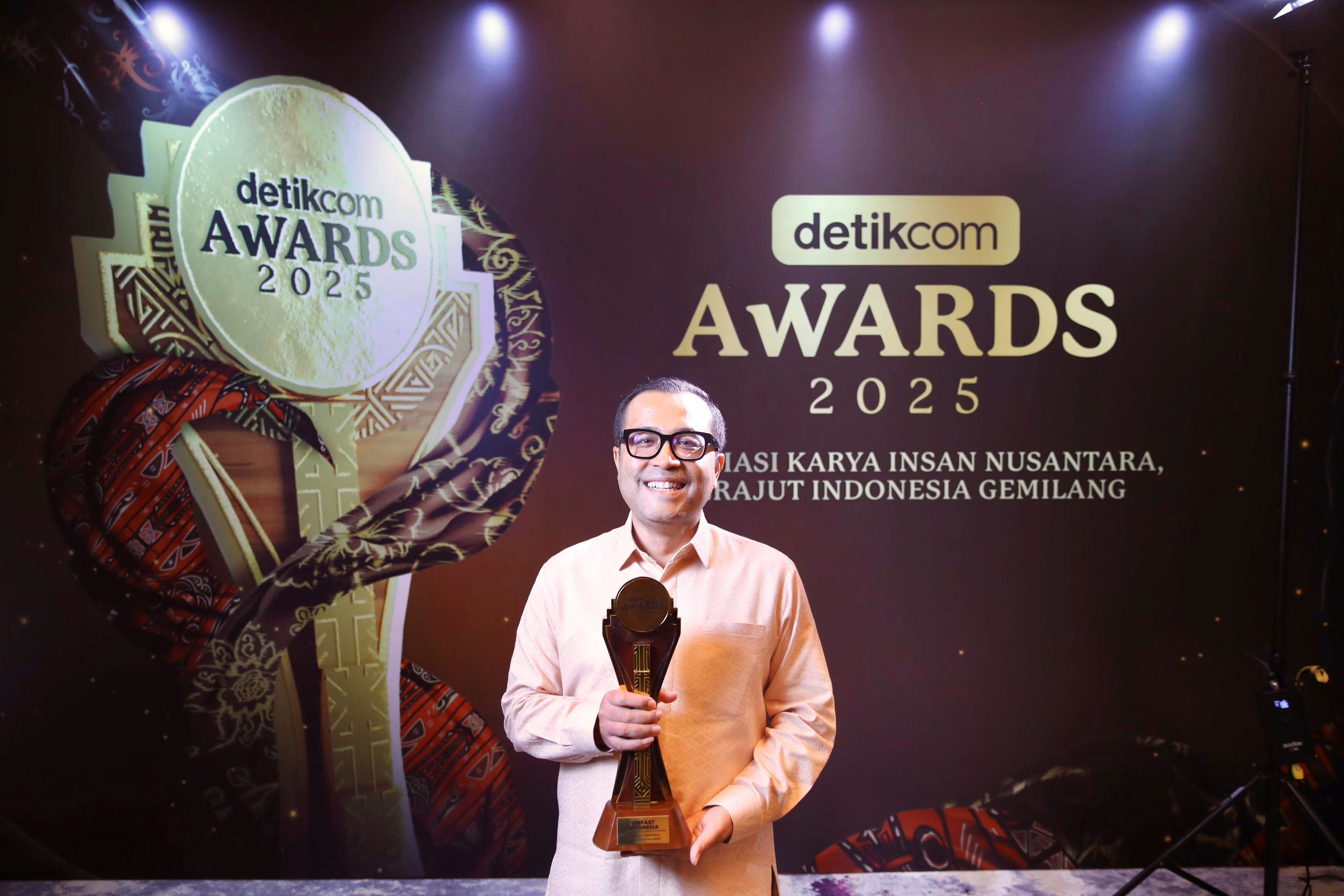 Ngày 26/11/2025, tại sự kiện trao giải thường niên, BTC detikcom Awards 2025 đã trao giải thưởng “Động lực Thúc đẩy Hệ sinh thái Xe điện Indonesia” cho VinFast. Đây là năm thứ hai liên tiếp VinFast được detikcom Awards vinh danh. Giải thưởng là minh chứng cho những nỗ lực bền bỉ của VinFast trong việc thúc đẩy chuyển đổi xanh thông qua hệ sinh thái xe điện toàn diện, thể hiện trọn vẹn tinh thần “Đưa con người tiến bước – Cùng đất nước vươn xa” của hãng tại Indonesia.