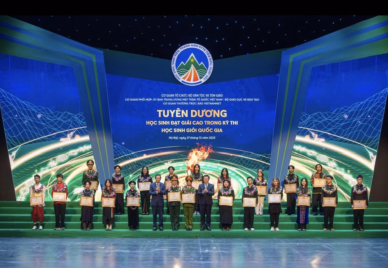 Tối 27/12, Lễ Tuyên dương học sinh, sinh viên, thanh niên dân tộc thiểu số xuất sắc, tiêu biểu năm 2025 diễn ra tại Nhà hát Hồ Gươm (Hà Nội). Phó Thủ tướng Mai Văn Chính dự và phát biểu tại lễ tuyên dương.