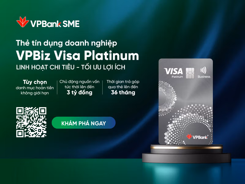 Ngân hàng TMCP Việt Nam Thịnh Vượng (VPBank) vừa chính thức ra mắt sản phẩm thẻ tín dụng doanh nghiệp VPBiz Visa Platinum với nhiều ưu đãi nổi bật, đồng hành cùng cộng đồng doanh nghiệp vừa và nhỏ (SME) trong quản lý chi tiêu, tối ưu hóa dòng tiền và thúc đẩy tăng trưởng bền vững.
